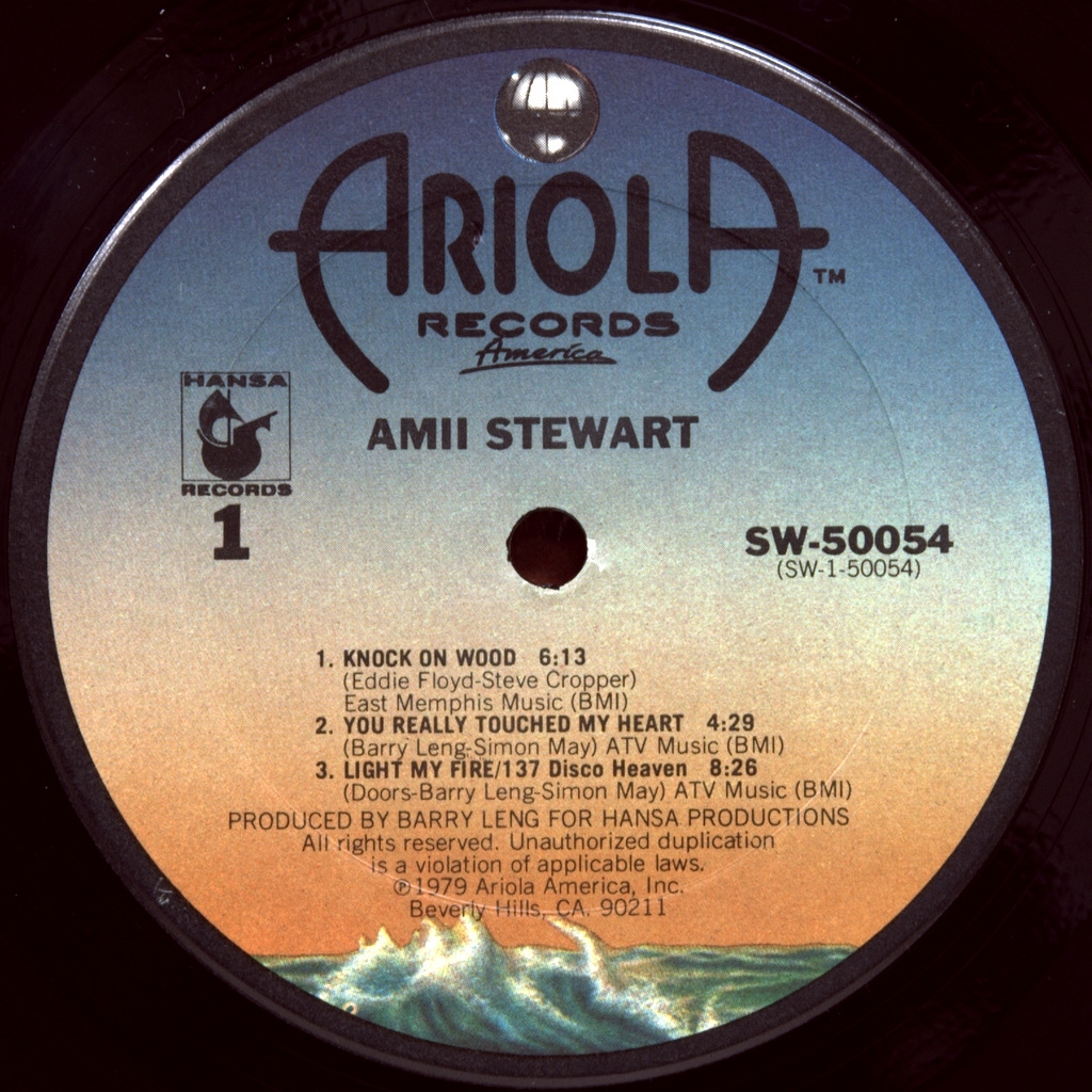 AMII STEWART- KNOCK ON WOOD- 1979-ПЕРВЫЙ ПРЕСС USA- ARIOLA-SW-50054. Редкий оригинал известной диско группы. Knock on Wood — студийный альбомЭми Стюарт, выпущенный в феврале 1979 года. Альбом содержал два успешных сингла: «Knock on Wood» (#1 в США в жанре поп-музыки, #6 в США в жанре RB, #5 в США в жанре клубной музыки, #6 в Великобритании, #13 в Германии) и «Light My Fire / 137 Disco Heaven» (#69 в США в жанре поп-музыки, #36 в США в жанре RB, #5 в Великобритании, #26 в Германии). В 1985 году двойной сингл с ремикшированными версиями песен «Knock on Wood» и «Light My Fire» занял 7-е место в британских чартах, после чего была переиздана песня «You Really Touched My Heart» (89-е место в Великобритании).