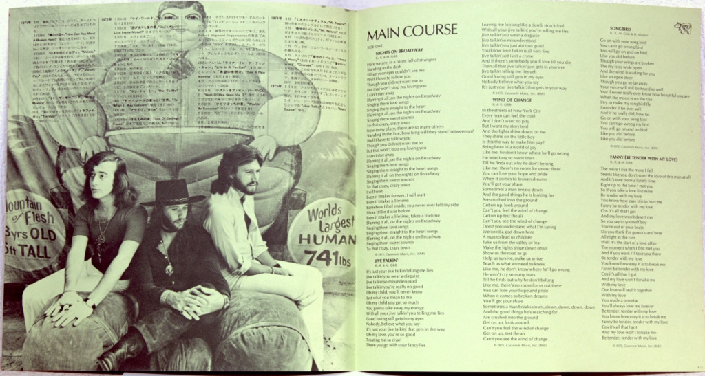 BEE GEES-MAIN COURSE-1975-ПЕРВЫЙ ПРЕСС JAPAN-RSO-MW2132. Редкий японский оригинал культового альбома. Main Course, выпущенный в 1975 году для лейбла RSO, является 13-м альбомом The Bee Gees , а их последний альбом будет выпущен Atlantic Records в США в рамках дистрибуции с Робертом Стигвудом . Этот альбом отметил изменение для Bee Gees, поскольку это был их первый альбом, который включал песни под влиянием диско, и создал модель до конца 1970-х годов. Альбом стал дважды платиновым в Канаде и получил золото в США.
