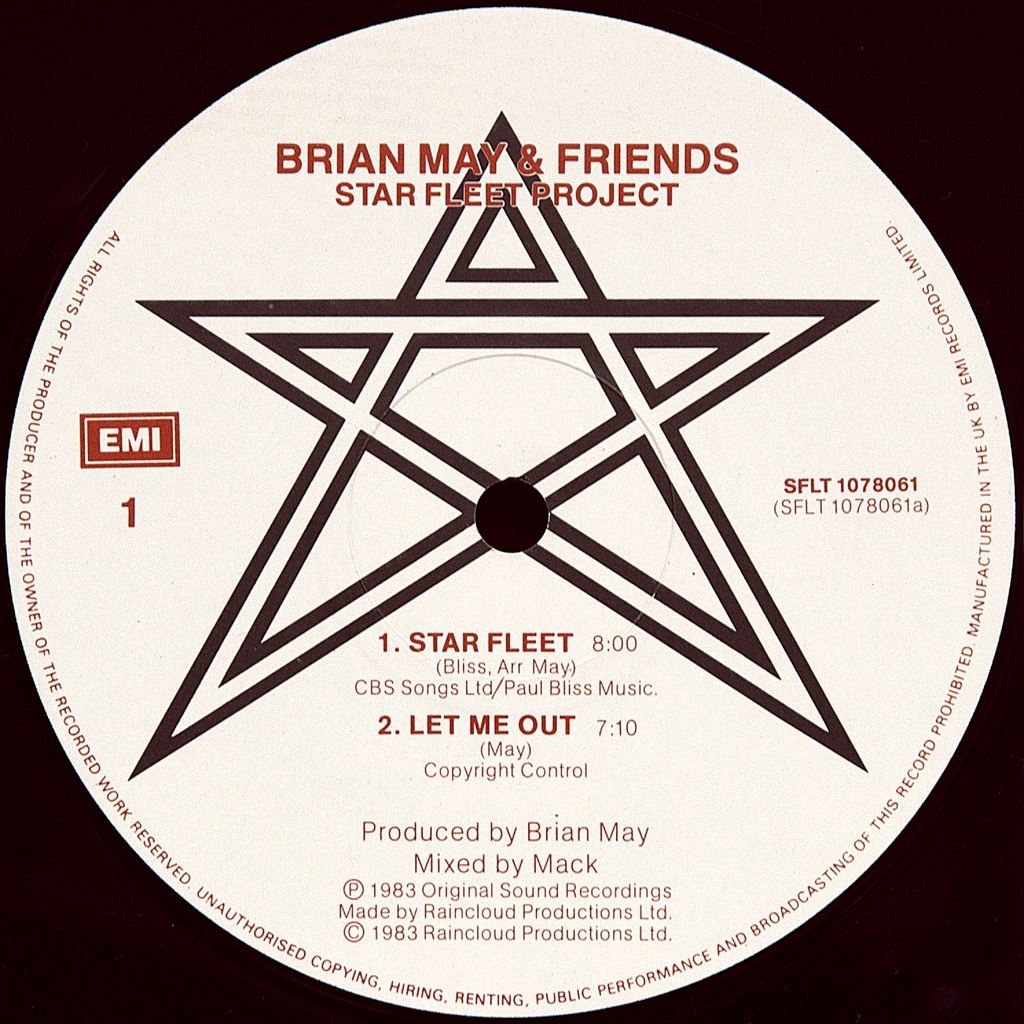 BRIAN MAY (EX-QUEEN) + FRIENDS-STAR FLEET PROJECT - 1983-ПЕРВЫЙ ПРЕСС UK- EMI-SFLT107806. Редкий британский оригинал гитариста QUEEN. Star Fleet Project — это сольный проект Брайана Мэя, гитариста Queen, и одноимённый мини-альбом. Альбом, выпущенный под названием «Брайан Мэй + друзья», включает в себя Мэй, гитариста Эдди Ван Халена, барабанщика Алана Гратцера (тогда игравшего в REO Speedwagon), Фила Чена (сессионного басиста, игравшего с Джеффом Беком и Родом Стюартом) и Фреда Мандела (клавишника Элис Купер и дополнительного клавишника в Hot Space Tour и The Works группы Queen). «В результате получились высокооктановые инструментальные композиции в стиле рок, мгновенно ставшие «квинскими» и мало чем отличающиеся от Flash с добавлением гитарной пиротехники». Записи не предназначались для выпуска и были минимально смикшированы. «Star Fleet Project [Мэй] назвал «мини-альбомом», потому что считал его ... слишком коротким, чтобы быть полноценным альбомом, но слишком длинным, чтобы быть даже синглом». Хотя поначалу альбом не пользовался успехом- к концу года он достиг 35-го места в Великобритании и 125-го в США.