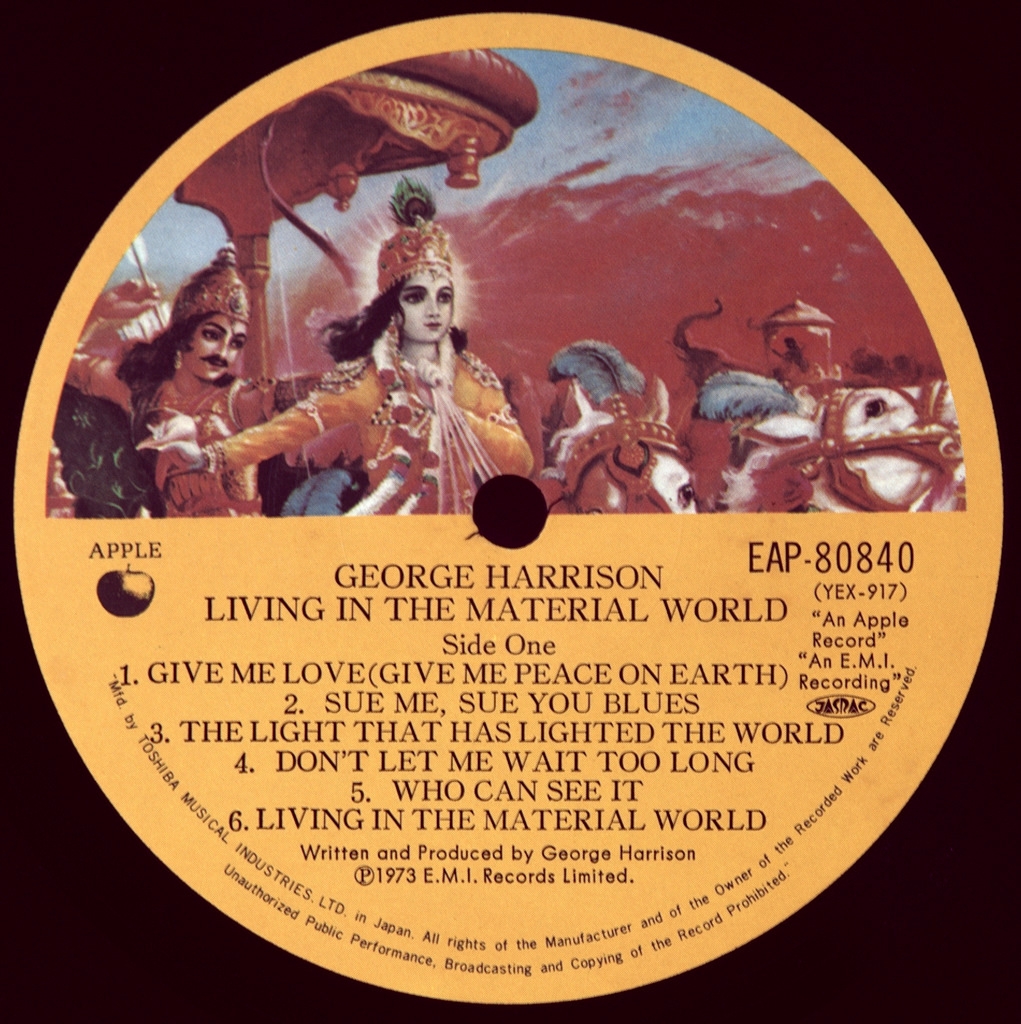 HARRISON, GEORGE-LIVING IN THE MATERIAL WORLD-1973-ПЕРВЫЙ ПРЕСС JAPAN -APPLE-EAP-80840. Редкий японский оригинал культового альбома. Living in the Material World - четвёртый студийный альбом английского музыканта Джорджа Харрисона, выпущенный 30 мая 1973 года на Apple Records. Как продолжение получившего признание критиков альбома All Things Must Pass 1970-х годов и его новаторского благотворительного проекта Концерт для Бангладеш, он был одним из самых ожидаемых релизов того года. Альбом был сертифицирован Американской ассоциацией звукозаписывающих компаний золотым через два дня после выпуска, став вторым альбомом Харрисона номер 1 в США, и породил международный хит «Give Me Love (Give Me Peace on Earth)». Он также возглавил чарты альбомов в Канаде и Австралии и достиг 2-го места в Великобритании.