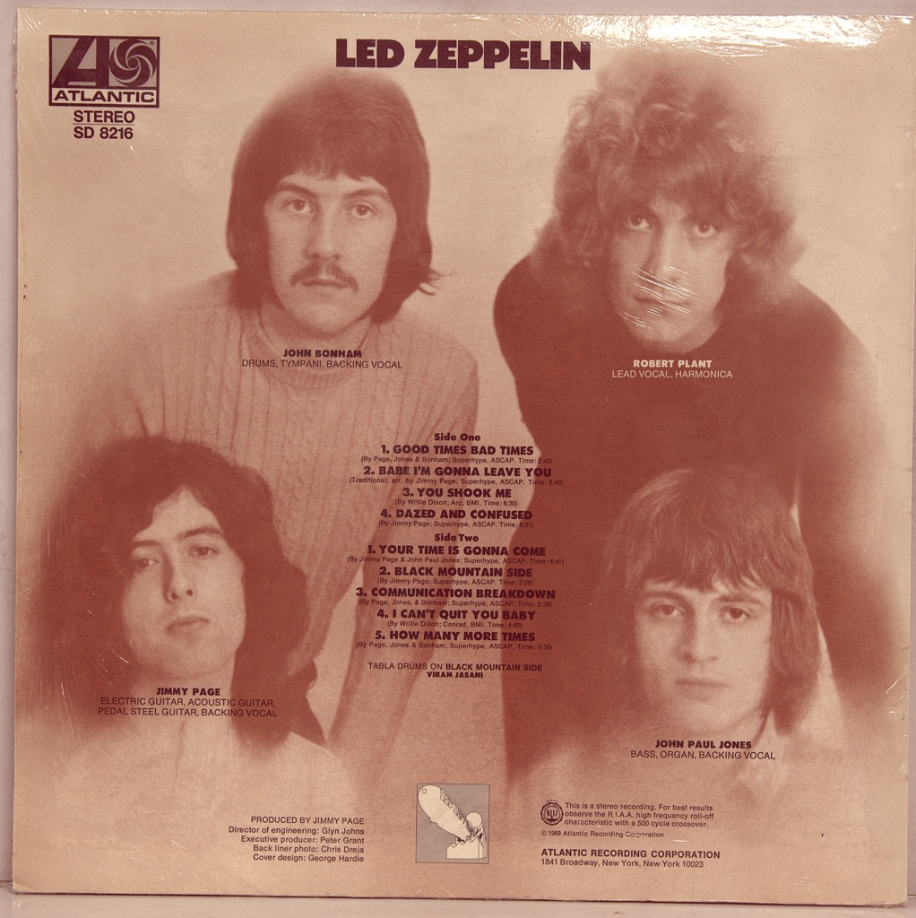 LED ZEPPELIN-SAME-1969-ПЕРВЫЙ ПРЕСС GERMANY-ATLANTIC-SD8216 Одна из икон в рок музыке, мега редкий германский оригинал с матрицей ST-A-681461-A-AT / ST-A-681462-A-AT. Led Zeppelin — дебютный студийный альбом британской рок-группы Led Zeppelin, записанный в октябре 1968 года в лондонской Olympic Studios и выпущенный Atlantic Records 12 января 1969 года. Первоначально альбом собрал в основном негативные отзывы прессы, но имел большой коммерческий успех и впоследствии был высоко оценен рок-критиками. Дату выпуска альбома, 12 января 1969 года, журнал Kerrang! в специальном выпуске отметил как день рождения хеви-метала В общей сложности на запись альбома группа истратила 1782 фунтов стерлингов, а собрал за 1969-70 год в целом около 3.5 миллиона фунтов, тем самым в 2,000 раз превысив внесённую сумму. В чартах альбом тоже не отставал размещаясь с 1 по 20 место в разных странах. В Британии за два года достиг максимум 6 место.