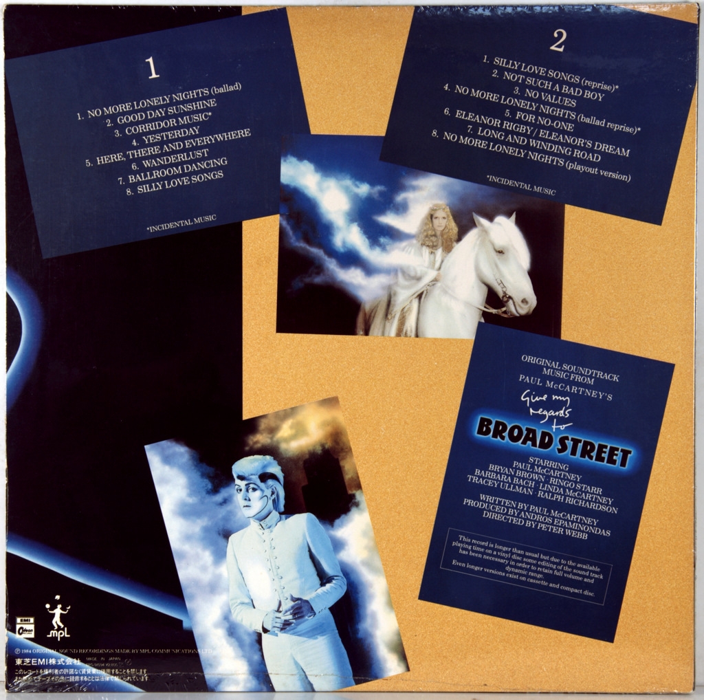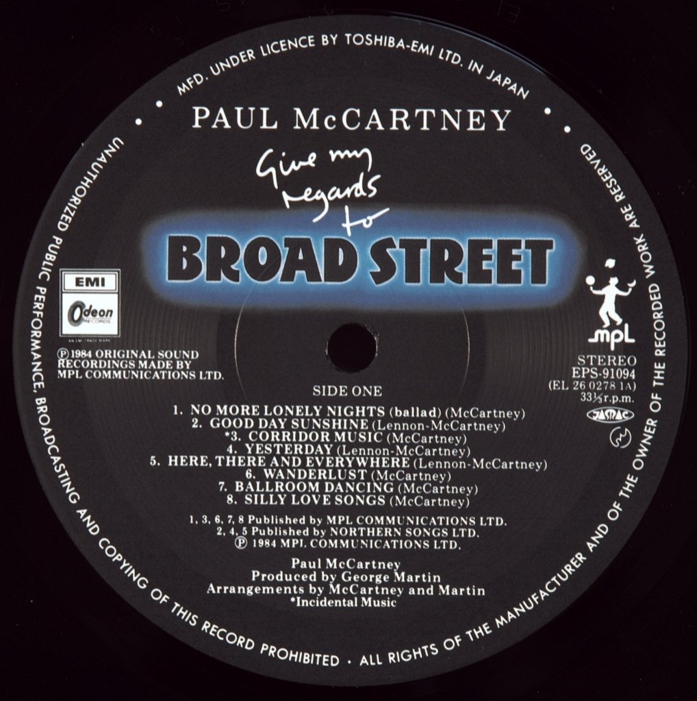 MCCARTNEY, PAUL-GIVE MY REGARDS TO BROAD STREET-1984-ПЕРВЫЙ ПРЕСС JAPAN-ODEON- EPS91094.Редкий японский оригинал культового альбома. Give My Regards to Broad Street- пятый сольный студийный альбом Пола Маккартни, а также альбом саундтреков к его одноименному фильму 1984года. Альбом занял 1 - е место в британском чарте. Ведущий сингл "No More Lonely Nights" был номинирован на премию BAFTA и премию "Золотой глобус". Это также должен был быть его последний альбом, выпущенный под лейблом Columbia Records, который был его американским лейблом более пяти лет..