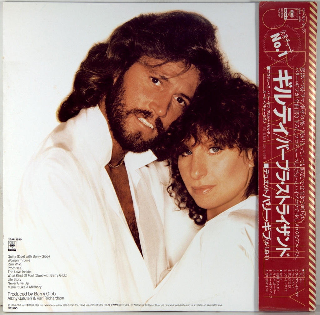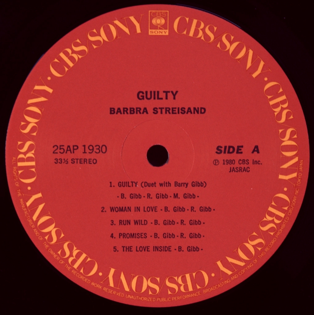 STREISAND, BARBRA - GUILTY-1980-ПЕРВЫЙ ПРЕСС JAPAN- CBS-25AP1930. Редкий японский оригинал поп дивы 60-х. Guilty — двадцать второй студийный альбом американской певицы Барбры Стрейзанд, выпущенный 23 сентября 1980 года на лейбле Columbia Records. Продюсерами альбома выступили Барри Гибб из Bee Gees и его постоянная команда Альби Галутен и Карл Ричардсон. Альбом получил положительные отзывы музыкальных критиков. Уильям Рулманн из AllMusic написал, что этот альбом — один из «наименее характерных» альбомов певицы и что «он звучит как альбом Bee Gees после «Лихорадки субботнего вечера» с вокалом Стрейзанд».