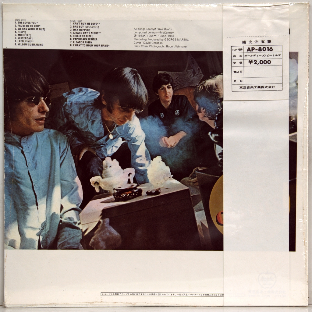 BEATLES-A COLLECTION OF BEATLES OLDIES (STEREO)-1966-ОРИГИНАЛЬНЫЙ ПРЕСС 1972 JAPAN-APPLE-AP-8016. Редкое японское издание культового альбома. A Collection of Beatles Oldies- сборник, содержащий подборку песен группы The Beatles, записанных с 1963 по 1966 год. Альбом был выпущен в 1966 году лейблом Parlophone в Великобритании и в Австралии, как в моно, так и в стерео-версиях . К предрождественскому сезону 1966 года у лейбла EMI впервые за три года не было никакого нового музыкального материала от The Beatles. Сборник был альтернативой, подходящей, чтобы удовлетворить спрос EMI на новую продукцию, поскольку группа только начала растянувшуюся на полгода запись Sgt. Pepper's Lonely Hearts Club Band, продолжение их альбома Revolver, выпущенного летом. Это был первый официальный сборник лучших хитов группы, хотя Битлз не принимали участия в создании альбома. Альбом в пике добрался до шестогого места в хит-параде альбомов Великобритании. Обложка альбома внесла свой вклад в миф «Пол мёртв» — так как на иллюстрации для обложки дорога, как кажется, ведёт прямо в голову сидящему человеку (как бы тайно намекая: «Пол погиб на дороге, в автокатастрофе»).