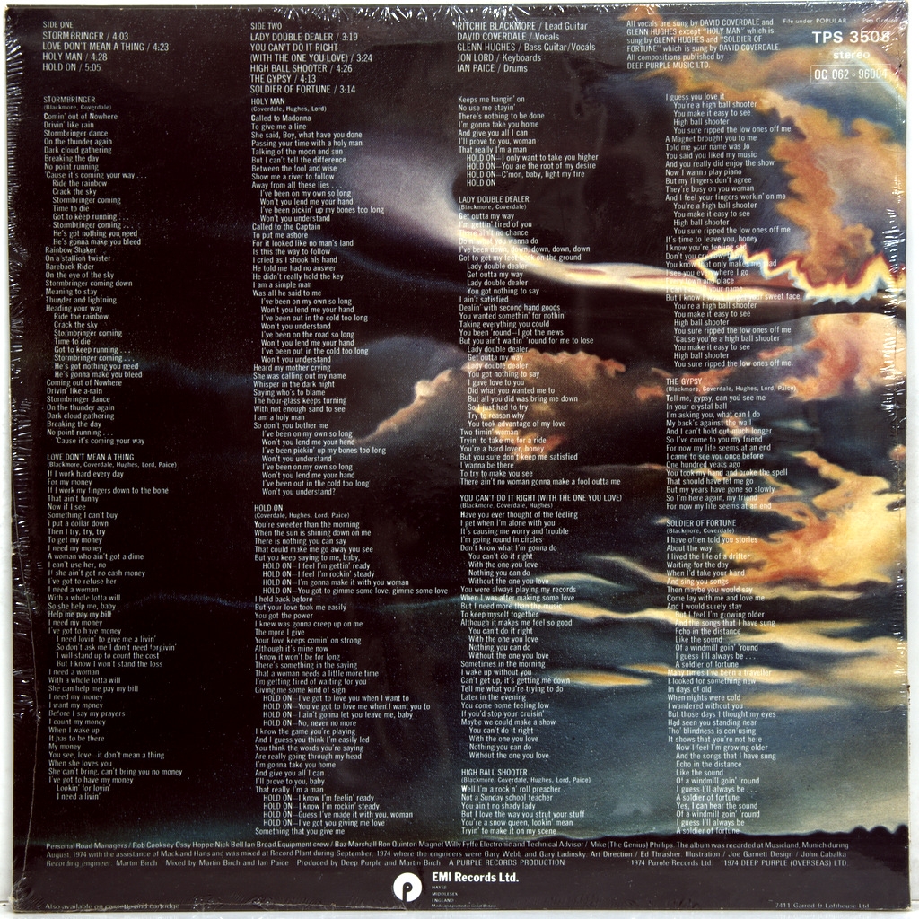 DEEP PURPLE-STORMBRINGER-1974-Первый пресс DANMARK-PURPLE RECORDS -TPS3508 . Редкий датский оригинал.Stormbringer является девятым студийным альбомом английской хард-рок группы Deep Purple, выпущенным в ноябре 1974 года, и вторым студийным альбомом, на котором представлена линейка Mk III, включая вокалиста Дэвида Кавердейла и басиста/вокалиста Гленна Хьюза .