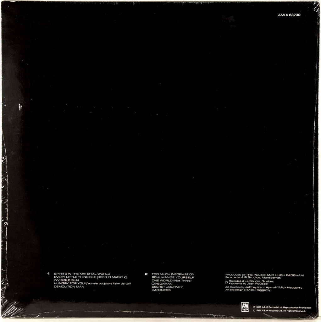 POLICE-GHOST IN THE MACHINE-1981-ПЕРВЫЙ ПРЕСС UK-A&M-AMLK63730. Матрицы A-14/B-3 Sterling . Редкий британский оригинал культового альбома рок-группы. Ghost in the Machine — четвёртый студийный альбом английской рок-группы The Police. Альбом был выпущен 2 октября 1981 года на лейбле A&M Records. Песни были записаны в период с января по сентябрь 1981 года во время сессий, проходивших в AIR Studios в Монтсеррате и Le Studio в Квебеке при участии продюсера Хью Пэдгэма. Ghost in the Machine возглавил британский чарт альбомов и занял второе место в американском Billboard 200. Альбом стал источником вдохновения для таких успешных синглов, как "Every Little Thing She Does Is Magic", "Invisible Sun" и "Spirits in the Material World", а четвёртый сингл, "Secret Journey", был выпущен в США. Ghost in the Machine занял 322-е место в списке Rolling Stone'500 величайших альбомов всех времён.