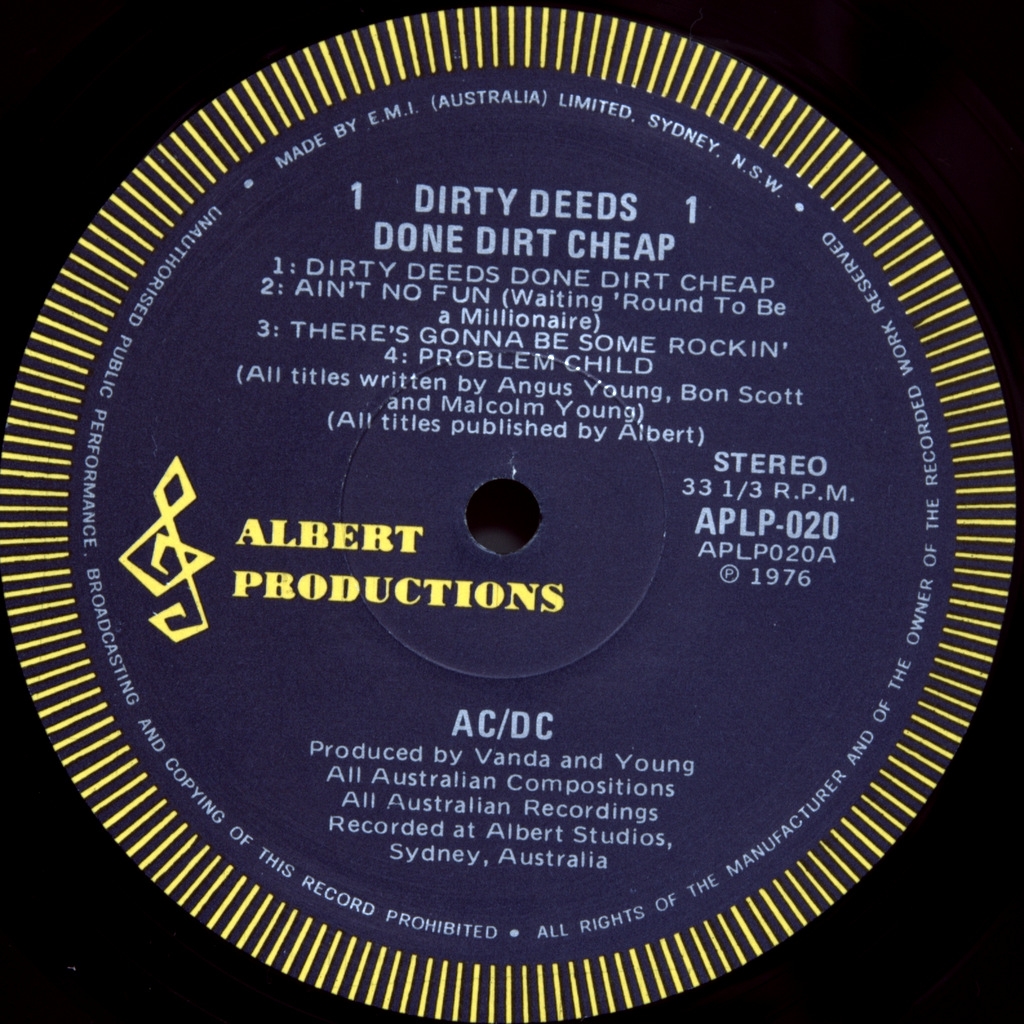 AC/DC-DIRTY DEEDS DONE DIRT CHEAP-1976-1977 ORIGINAL PRESS AUSTRALIA ALBERT PRODUCTIONS room APLP020. Very rare second press of iconic Australian group. The album blew the music market in Australia finishing in 4th place ,and in the US Billboard 200 - the 3rd place.