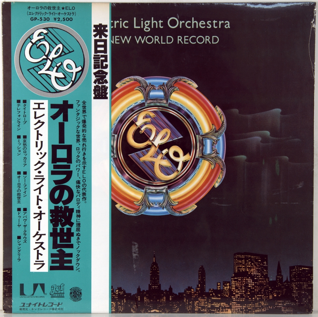 ELECTRIC LIGHT ORCHESTRA-A NEW WORLD RECORD -1976-ORIGINAL PRESS 1977 JAPAN-UA-GP-530. A rare Japanese original of the cult album. A New World Record is the sixth studio album by the British band Electric Light Orchestra, released in September 1976. The album was remastered and re-released in 2006 with the addition of six bonus tracks. A New World Record became the band's first album to reach the top ten in the UK (the previous three albums had great success in the USA, but not in the homeland of the musicians). The album was certified platinum in both the UK and the USA, and sold five million copies in the first year after its release. Like the previous album, A New World Record was recorded at Munich's Musicland Studios.