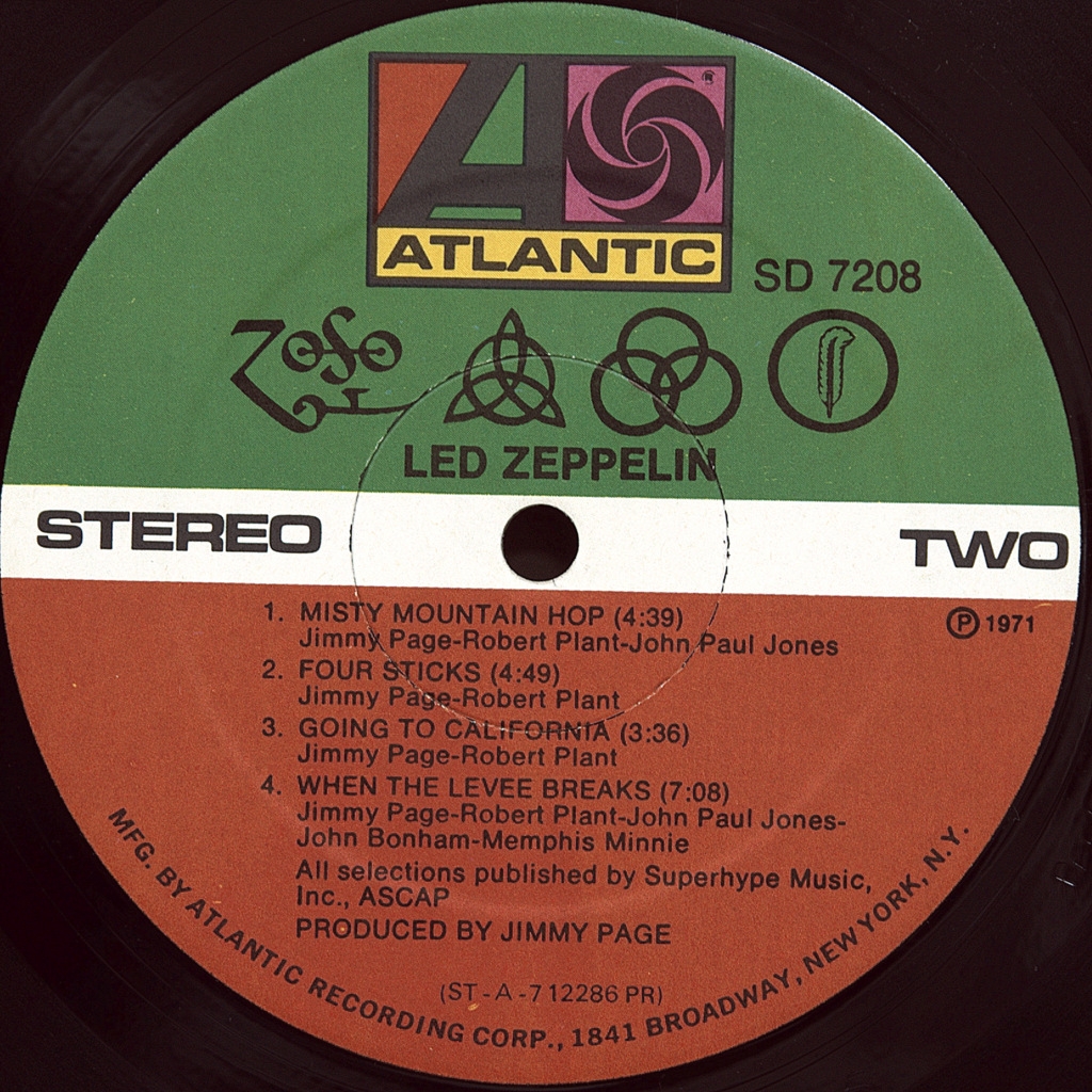 LED ZEPPELIN-IV-1971-THE FIRST PRESS USA-ATLANTIC-SD7208. RICHMOND PRESSING Matrices PORKY ST-A-712286-C AT/GP PR/ PECKO DUCK ST-A-712286-F AT/GP PR is a very rare American original of the cult album. Led Zeppelin IV is the fourth studio album by the British rock band Led Zeppelin, released on November 8, 1971 by Atlantic Records. Led Zeppelin IV has sold over 37 million copies, making it not only the most commercially successful album in the band's history, but also one of the best-selling albums in the world. In particular, Led Zeppelin IV is considered the most commercially successful hard rock record of all time, and the song "Stairway to Heaven" released on it is still the most played piece of music of any genre on American radio and one of the most famous compositions in the history of music.Led Zeppelin IV is regularly featured in various lists of the "best albums in history". So, in 2003, the American magazine Rolling Stone placed it on the 66th place of its rating of "The 500 greatest albums of all time". In turn, the British edition of New Musical Express marked him on the 106th line of a similar vote. In addition, Led Zeppelin IV ranks 1st in Classic Rock magazine's ratings of "100 Greatest British Rock Albums" and "100 Greatest Rock Albums in History", as well as 4th in the list of "200 Greatest Albums according to the Rock and Roll Hall of Fame", compiled with the participation of the Association the US music business . In 1999, the recording was inducted into the Grammy Hall of Fame, becoming the first of the band's albums to receive such a privilege.