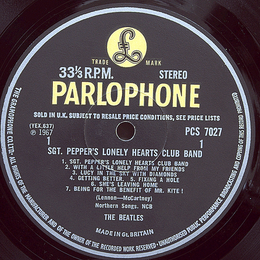 BEATLES-SGT PEPPER'S LONELY HEARTS CLUB BAND-1967-FIRST PRESS (STEREO) UK-PARLOPHONE-PSC7027 Matrix Numbers: Side 1: YEX 637-1; Side 2: YEX 638-1. Sgt. Pepper's Lonely Hearts Club Band is the eighth album by the British rock band The Beatles. Many critics refer to Sgt. Pepper's Lonely Hearts Club Band is among the most influential rock albums of all time. In particular, it was named the best album of all time by Rolling Stone magazine (2003). According to a vote conducted by the BBC radio station among its listeners for the fiftieth anniversary of the British charts in 2006, the album ranks first in popularity in the UK. Sgt. Pepper's Lonely Hearts Club Band ranks ninth in the list of albums-the world's leading sales with a result of more than 30 million copies.The album was recorded over a 129-day period beginning on December 6, 1966, and released on June 1, 1967 in the United Kingdom (the album went on sale in the United States on June 2 of that year). The album won 4 Grammy Awards in the following categories: 1. Album of the Year, 2. Best Contemporary Performance by a Band, 3. Best Album Sound Design, 4. Best Album Cover.