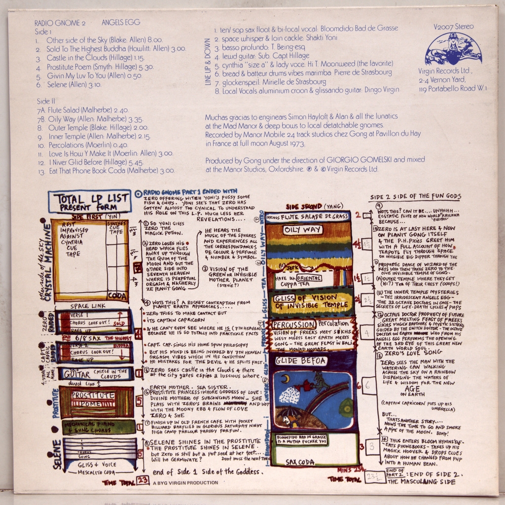 GONG - ANGELS EGG-1973-SECOND PRESS-UK-VIRGIN-V2007. A-2U/B-3U matrices. A rare British original of a cult album. The second part of the famous Gong trilogy under the general title "Radio Gnome Invisible".