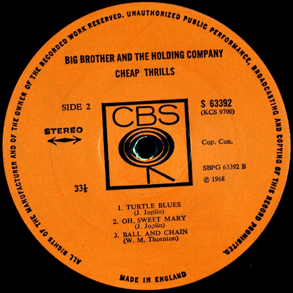 BIG BROTHER & THE HOLDING COMPANY-CHEAP THRILLS-1968-ПЕРВЫЙ ПРЕСС UK-CBS номер 63392.