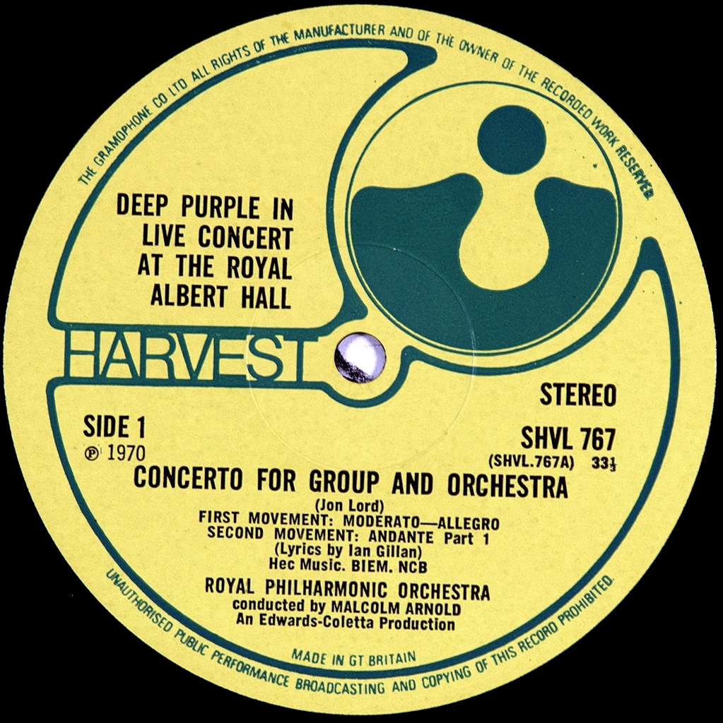 DEEP PURPLE & THE ROYAL PHILHARMONIC ORCHESTRA, MALCOLM ARNOLD-CONCERTO FOR GROUP AND ORCHESTRA-1970-ПЕРВЫЙ ПРЕСС UK-HARVEST - SHVL767. матрицы A-1/B-1 Стампера 2OL/1MD (Очень рано!)