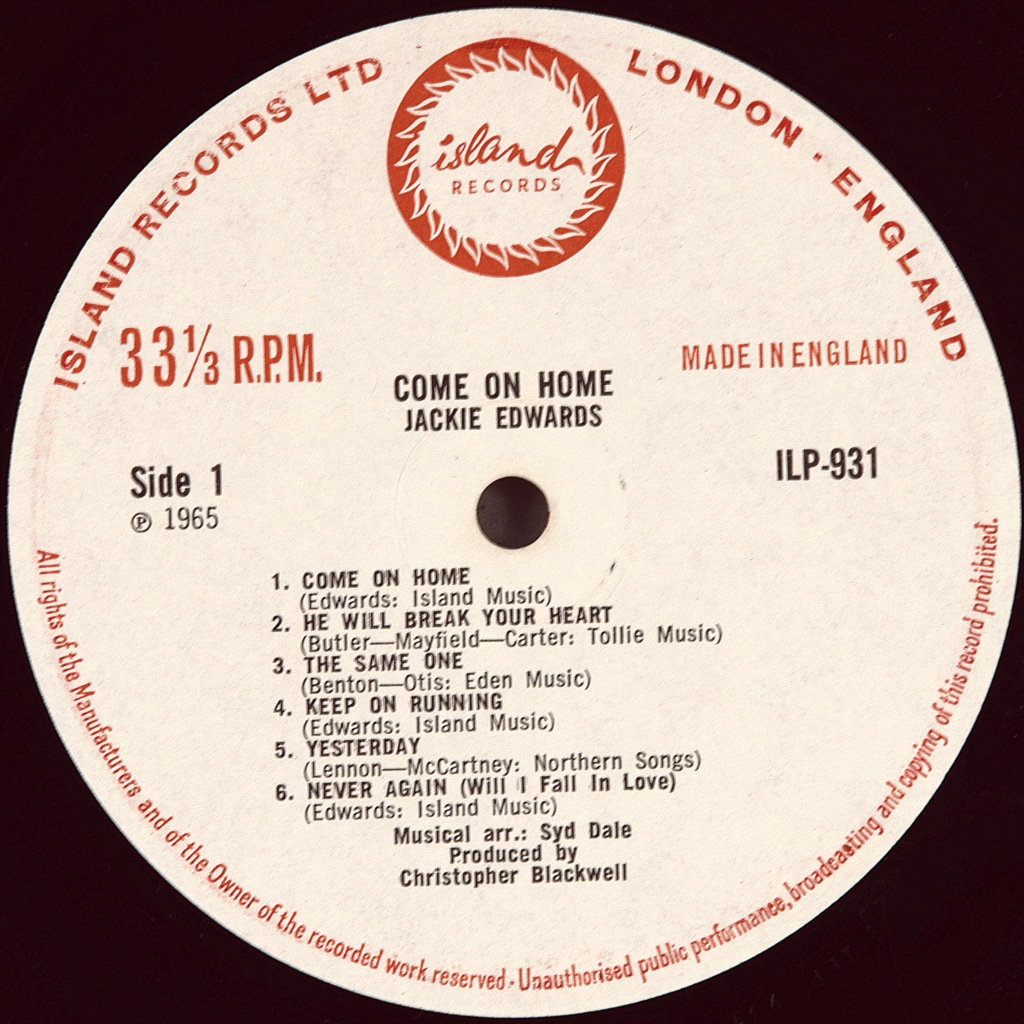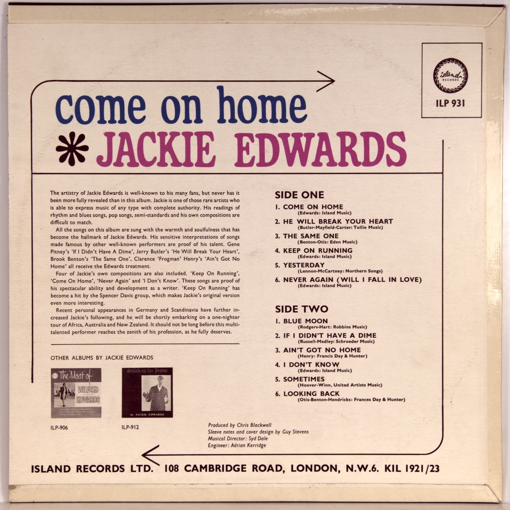 JACKIE EDWARDS-COME ON HOME-1965-ПЕРВЫЙ ПРЕСС UK-ISLAND номер ILP-931 Мега редкий альбом родоначальника фанка, ска и регги. Считается одним из значимых артистов лейбла ISLAND.