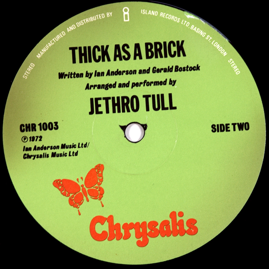 JETHRO TULL-THICK AS A BRICK-1972-ПЕРВЫЙ ПРЕСС UK-CHRYSALIS номер CHR1003 A-3U/B-2U