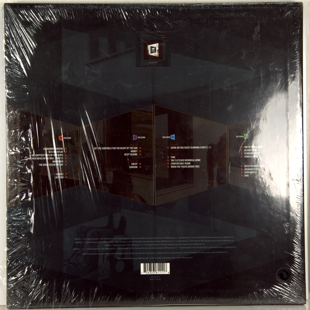 Редкая малотиражная коробка состоящая из 4 виниловых пластинок. Согласно пресс-релизу, «„Echoes“ был сделан с активным участием Дэвида Гилмора, Роджера Уотерса, Ника Мэйсона и Ричарда Райта». Песня "When the Tigers broke free" прежде была выпущена только на сингле. Виниловые пластинки, обложки, вкладки и коробка в топ состоянии - NMINT/ARCHIVE.