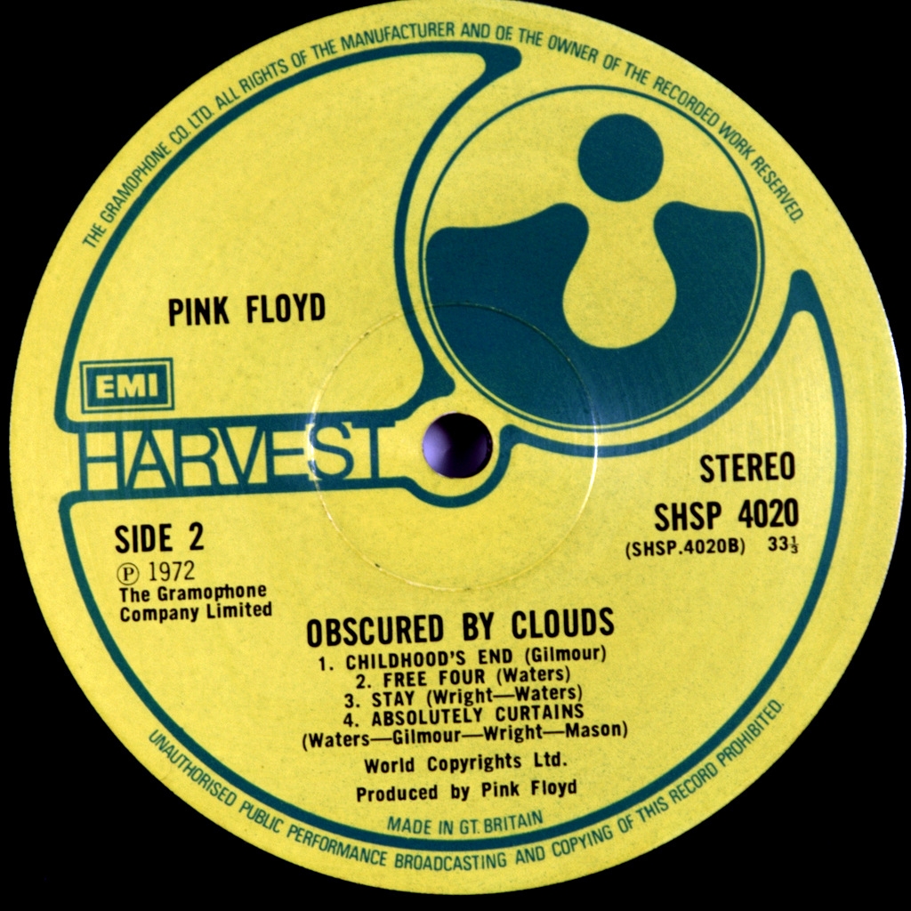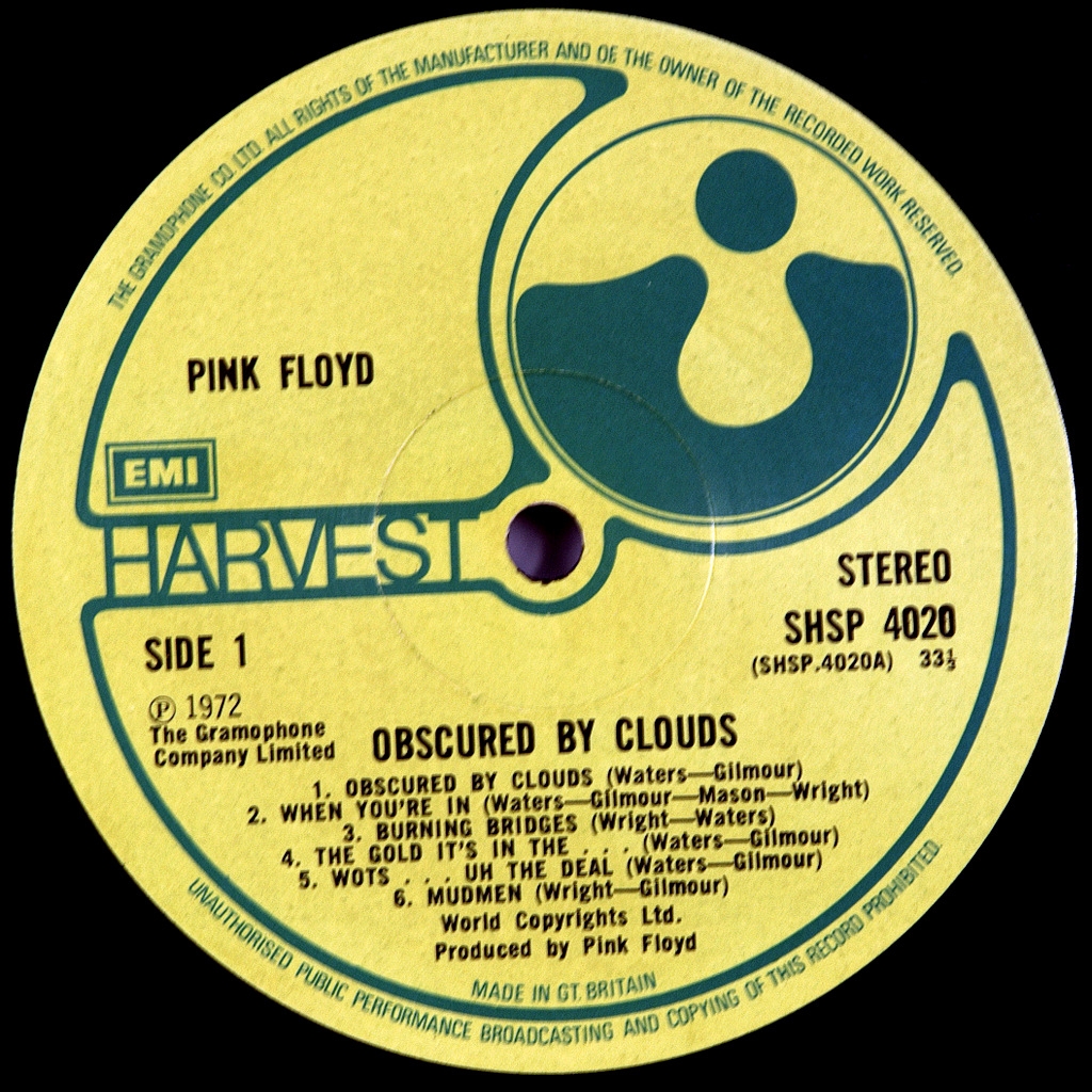 PINK FLOYD-OBSCURED BY CLOUDS-1972-ПЕРВЫЙ ПРЕСС UK-HARVEST- номер SHSP4020 матрицы A2/B2 стампера 2GR/2GR .