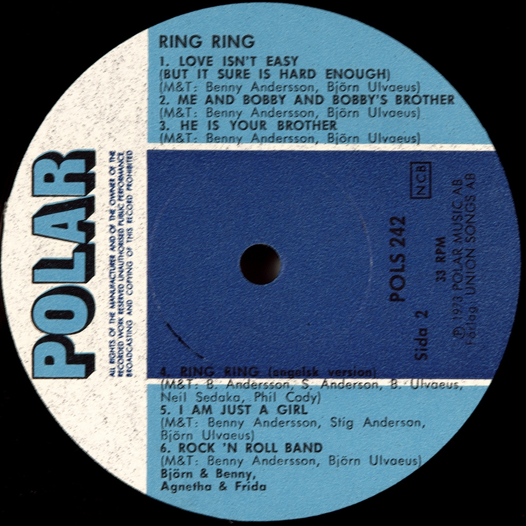 Первый альбом легендарной группы ABBA-RING RING-1973-ПЕРВЫЙ ПРЕСС SWEDEN-POLAR номер POLS 242 матрицы A2/B2.