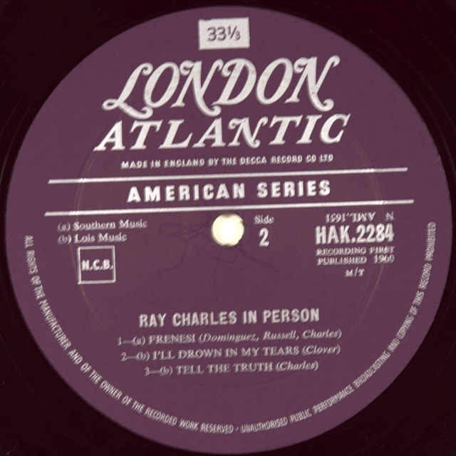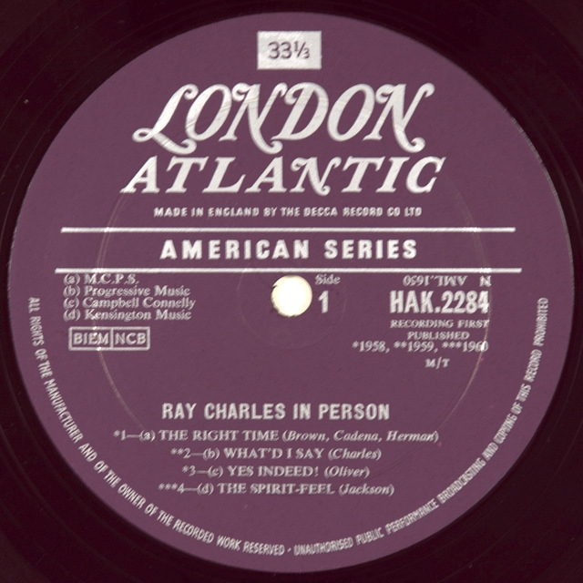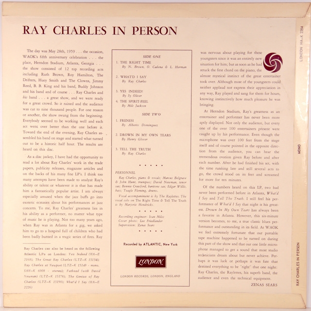 Альбом легенды соул и джаза CHARLES, RAY-IN PERSON-1960-Первый пресс UK-LONDON номер HAK2284 матрицы A-1B/B-2B
