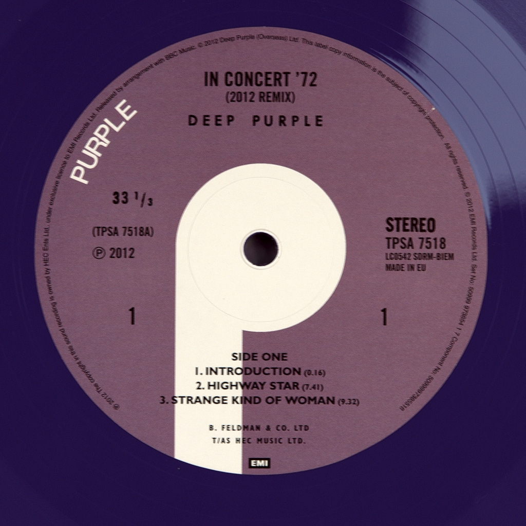 DEEP PURPLE-IN CONCERT '72 (2 × Vinyl, Limited Edition, Purple + Vinyl, 7", 33 ⅓ RPM, Limited Edition, Purple)-2012-ПЕРВЫЙ ПРЕСС UK/EU-PURPLE номер TPSA7518 Редкий концерт 1972 года , впервые опубликованный в 2012 году .
