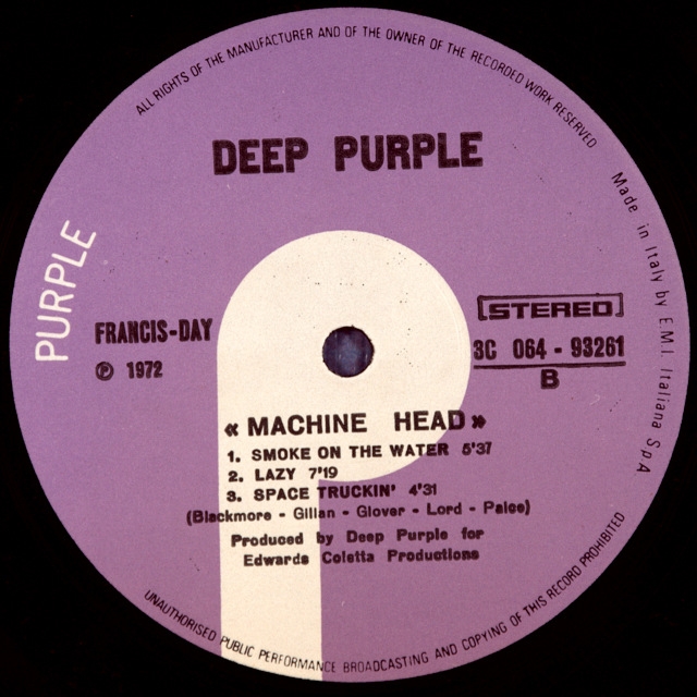 Легендарный альбом DEEP PURPLE-MACHINE HEAD-1972-Первый пресс ITALY -PURPLE REC. номер 3c064-93261