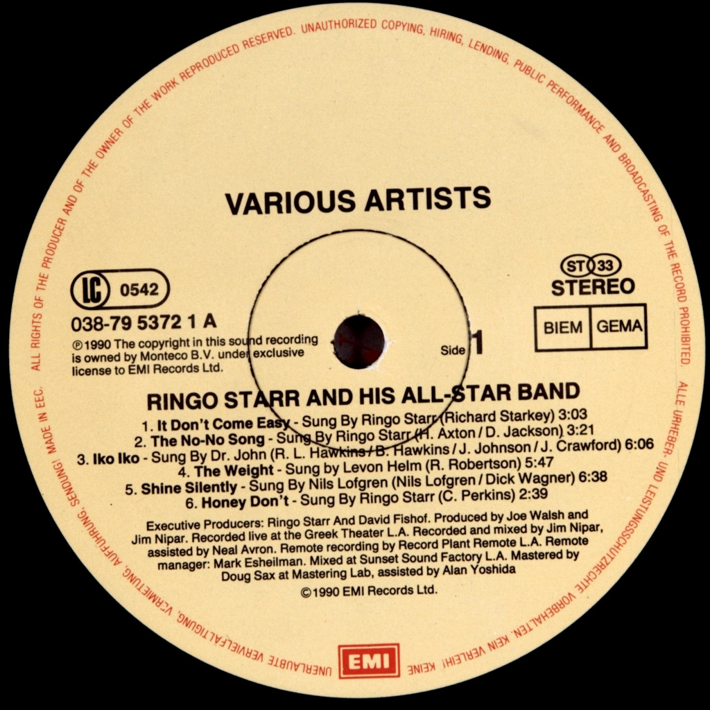 RINGO STARR AND HIS ALL-STARR BAND-RINGO STARR AND HIS ALL-STARR BAND...-1990-ПЕРВЫЙ ПРЕСС EEC -EMI номер 0387953721. Очень редкий альбом RINGO записанный с друзьми.