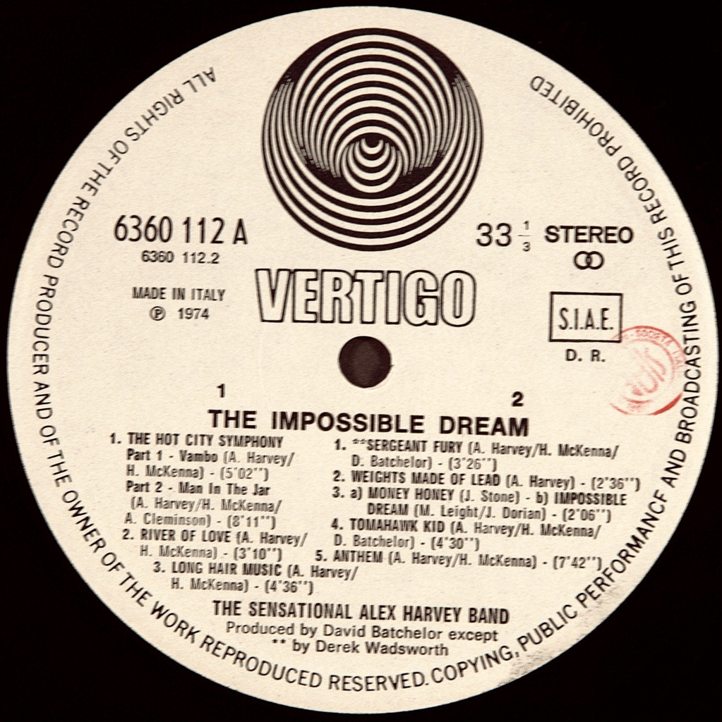 SENSATIONAL ALEX HARVEY BAND-IMPOSSIBLE DREAM-1974-ПЕРВЫЙ ПРЕСС ITALY-VERTIGO SWIRL номер 6360112.Мега редкий альбом на лейбле VERTIGO-SWIRL.