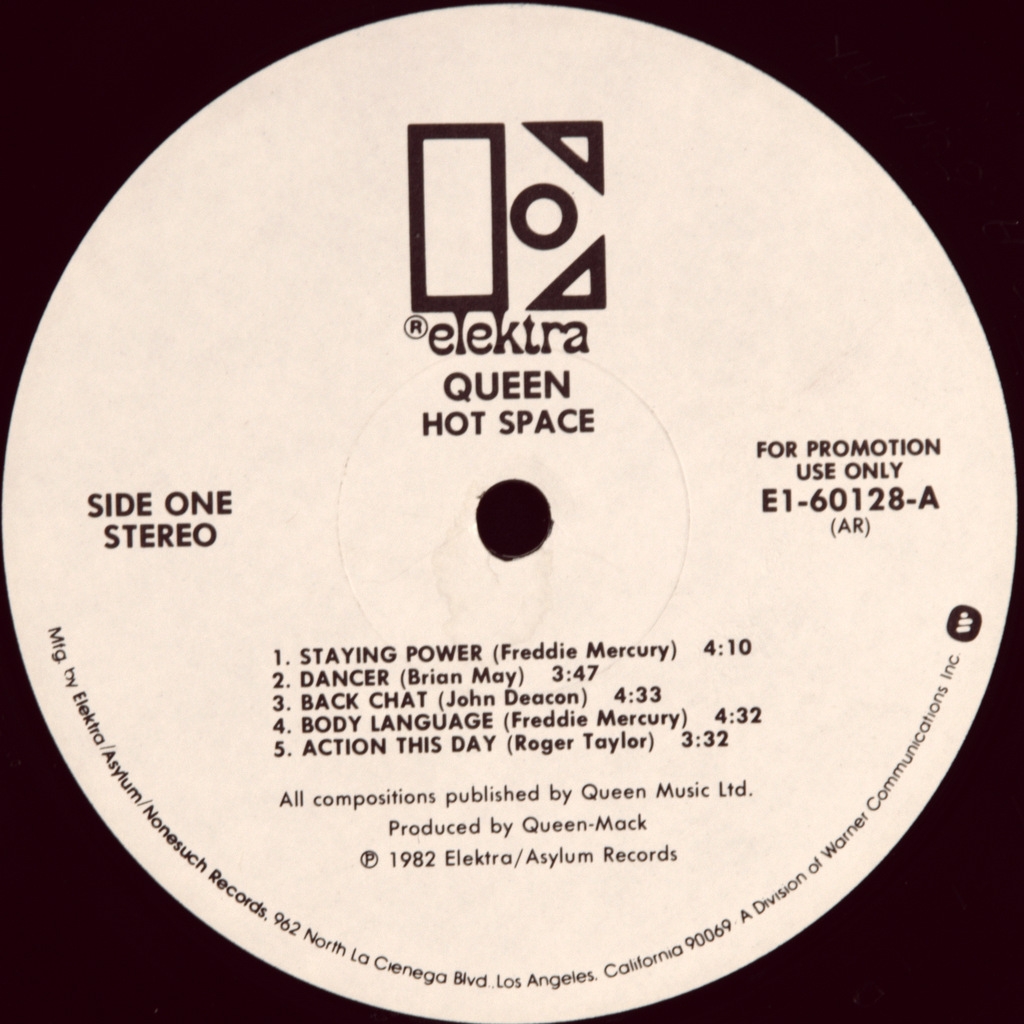QUEEN-HOT SPACE (PROMO WHITE LABEL)-1982-ПЕРВЫЙ ПРЕСС USA-ELEKTRA номер E1-60128 Редкий промо оригинал.