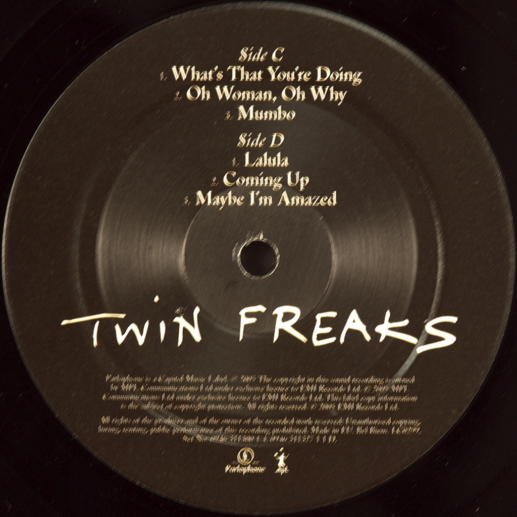 PAUL MCCARTNEY(TWIN FREAKS)-TWIN FREAKS-2005-ПЕРВЫЙ ПРЕСС UK/EU-PARLOPHONE номер 094631130014.Twin Freaks — альбом Пола Маккартни, созданный им в сотрудничестве с диск-жокеем и продюсером Freelance Hellraiser. В альбом вошли ремиксы на песни Маккартни. Выпущен 14 июня 2005 лейблом как двойной виниловый LP-альбом.