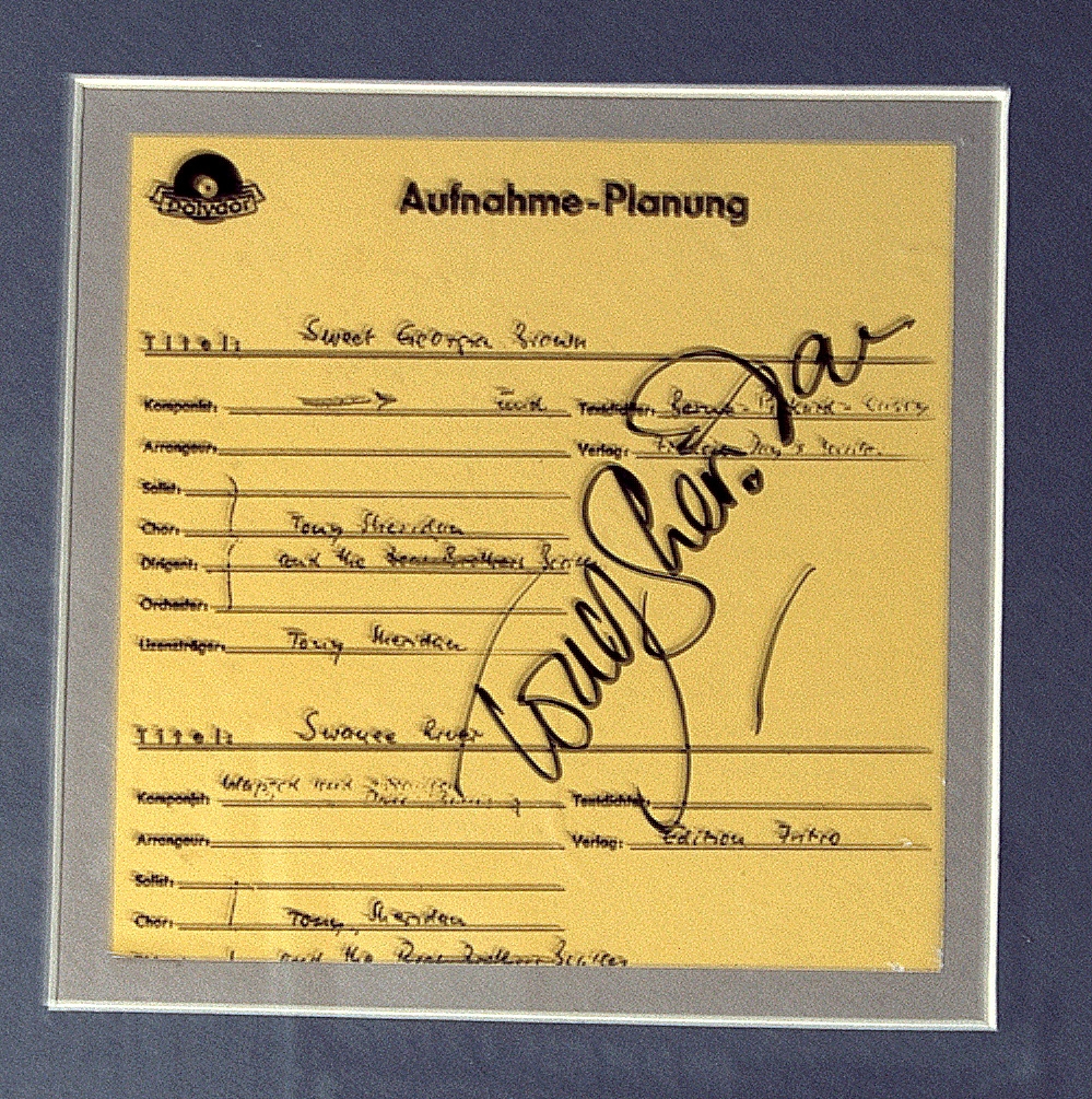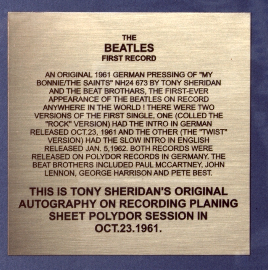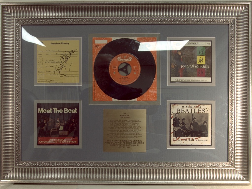 TONY SHERIDAN AND BEATLES- СИНГЛ И АВТОГРАФ TONY SHERIDAN. Набор оформлен в раме размером 70x50 см . Tony Sheridan— британский певец и гитарист, исполнитель раннего рок-н-ролла, вошедший в историю благодаря синглу My Bonnie (1961), в записи которого приняли участие тогда ещё практически никому не известные.