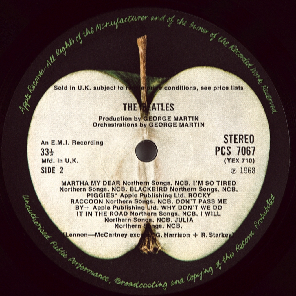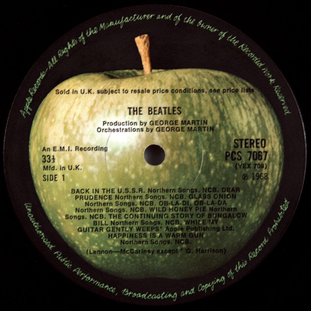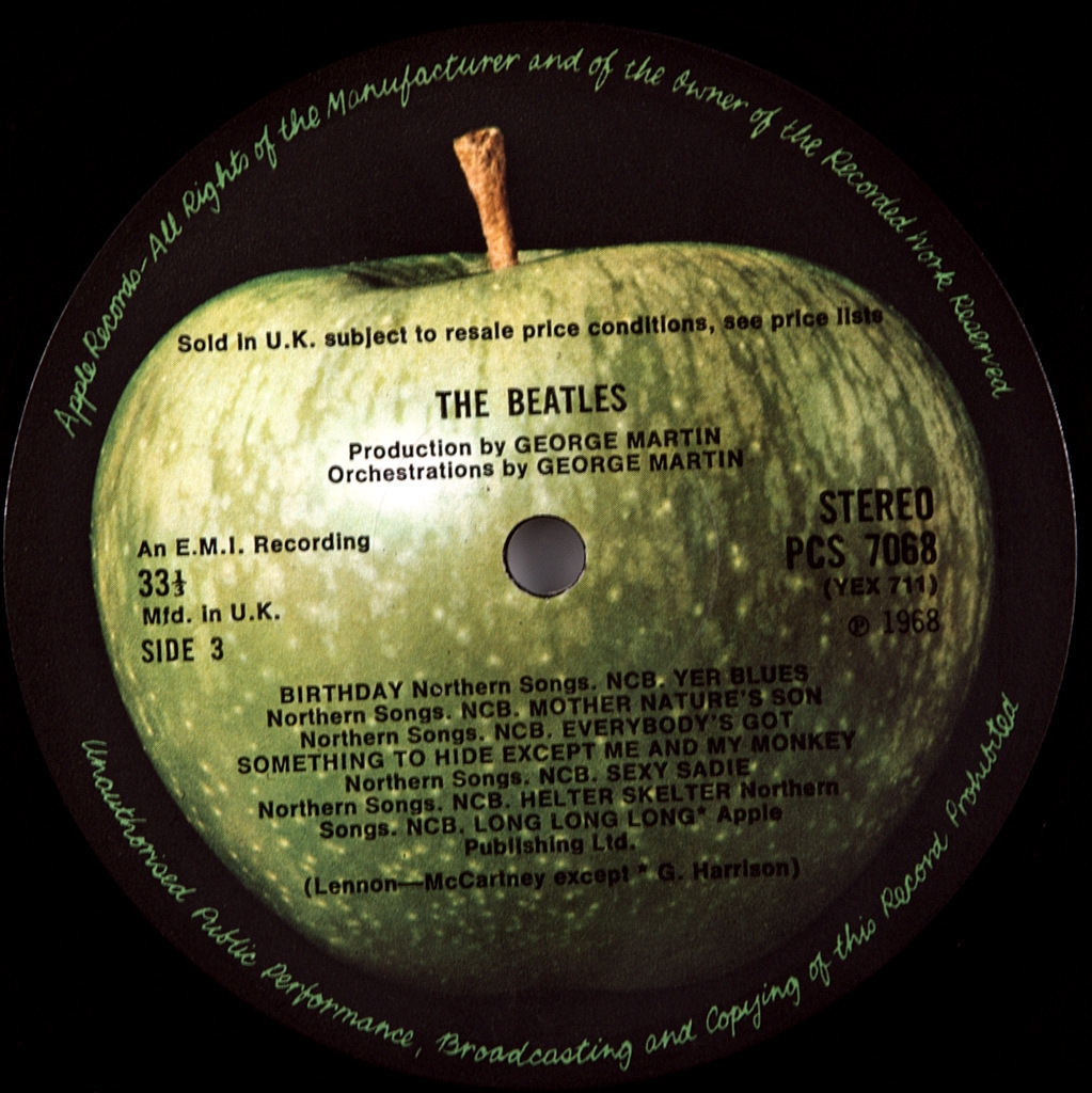 BEATLES-SAME (WHITE ALBUM)- STEREO-1968-ОРИГИНАЛЬНЫЙ ПРЕСС 1968 (An EMI Recording)-UK-APPLE- номер PCS7068 Матричные номера: Сторона 1: YEX 709-1; Сторона 2: YEX 710-1; Сторона 3: YEX 711-1; стороны 4: YEX 712-1. Оригинальный пресс ноябрь 1968 года с первыми матрицами , на лейбл был добавлен текст "an EMI recording"