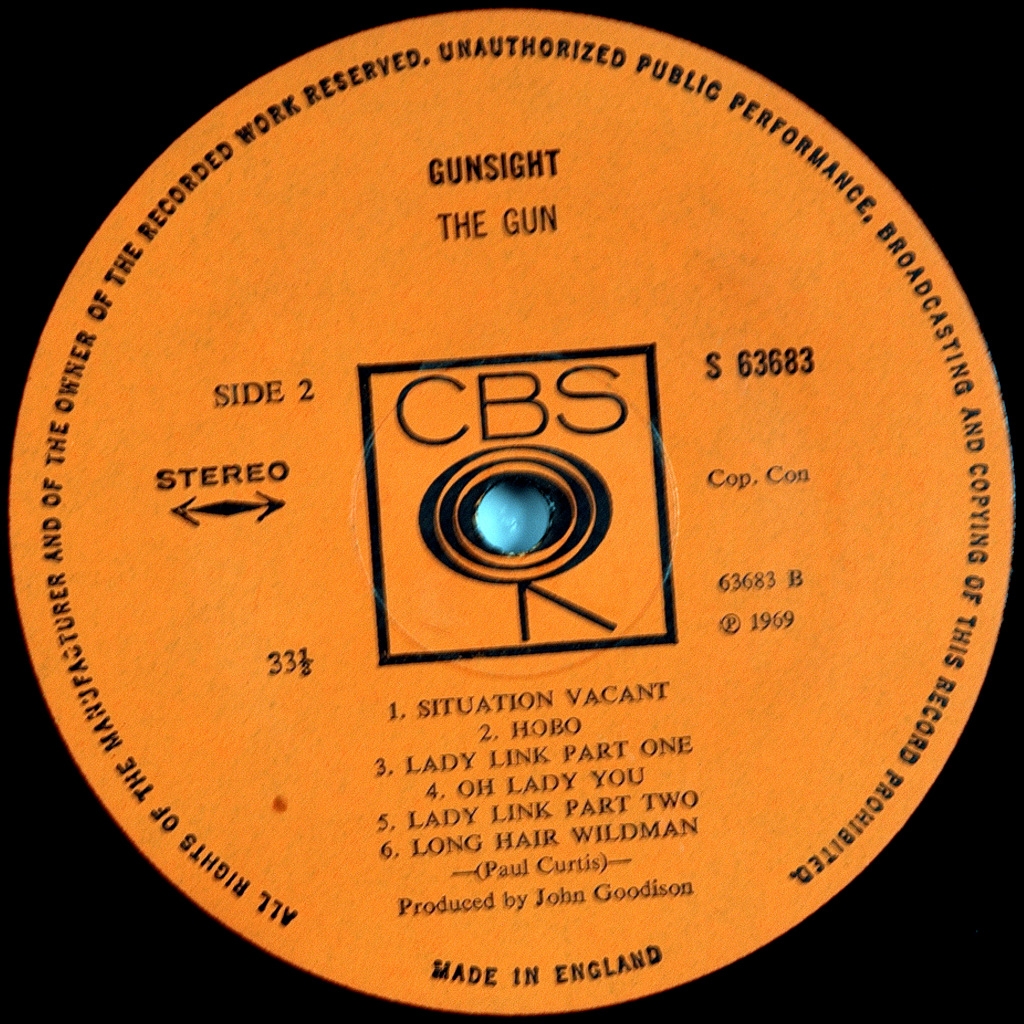 GUN-GUN SIGHT-1969-ПЕРВЫЙ ПРЕСС UK-CBS - S63683. Очень редкий оригинал легендарных GUN.,. «Gunsight» - второй, и последний альбом британской хард-рок группы "The Gun". Альбом получился гораздо более современным, чем его предшественник, даже можно говорить о том, что по музыкальным качествам он опередил практически все известные рок-группы того же периода, за исключение "Битлз" с ихними последними альбомами. Однако, на беду, в нем не оказалось ни одного явного хита, пластинка не получила у критиков понимания, бывшие фанаты очень быстро забыли прошлые заслуги "The Gun", и просуществовав еще несколько месяцев, коллектив распался.