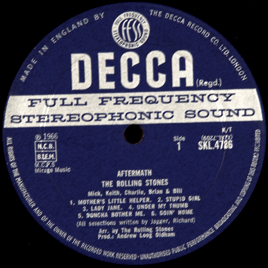 ROLLING STONES-AFTERMATH (STEREO)-1966-ПЕРВЫЙ ПРЕСС UK-DECCA номер SKL4786. Матрицы XZAL-7209-2W, XZAL-7210-2W. Редкий британский стерео оригинал культового альбома ROLLING STONES.