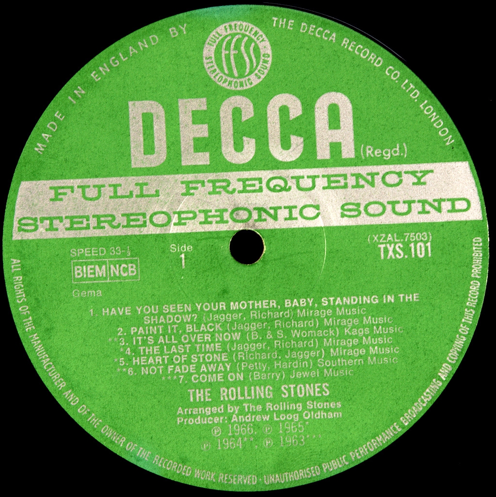 ROLLING STONES-BIG HITS (HIGH TIDE AND GREEN GRASS)-1966-ОРИГИНАЛЬНЫЙ ПРЕСС 1968 UK-DECCA номер TXS101. Матрицы XZAL-7503-3W, XZAL-7504-3W. Редкий стерео британский оригинальный пресс культового альбома ROLLING STONES.