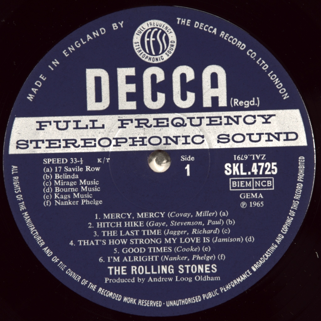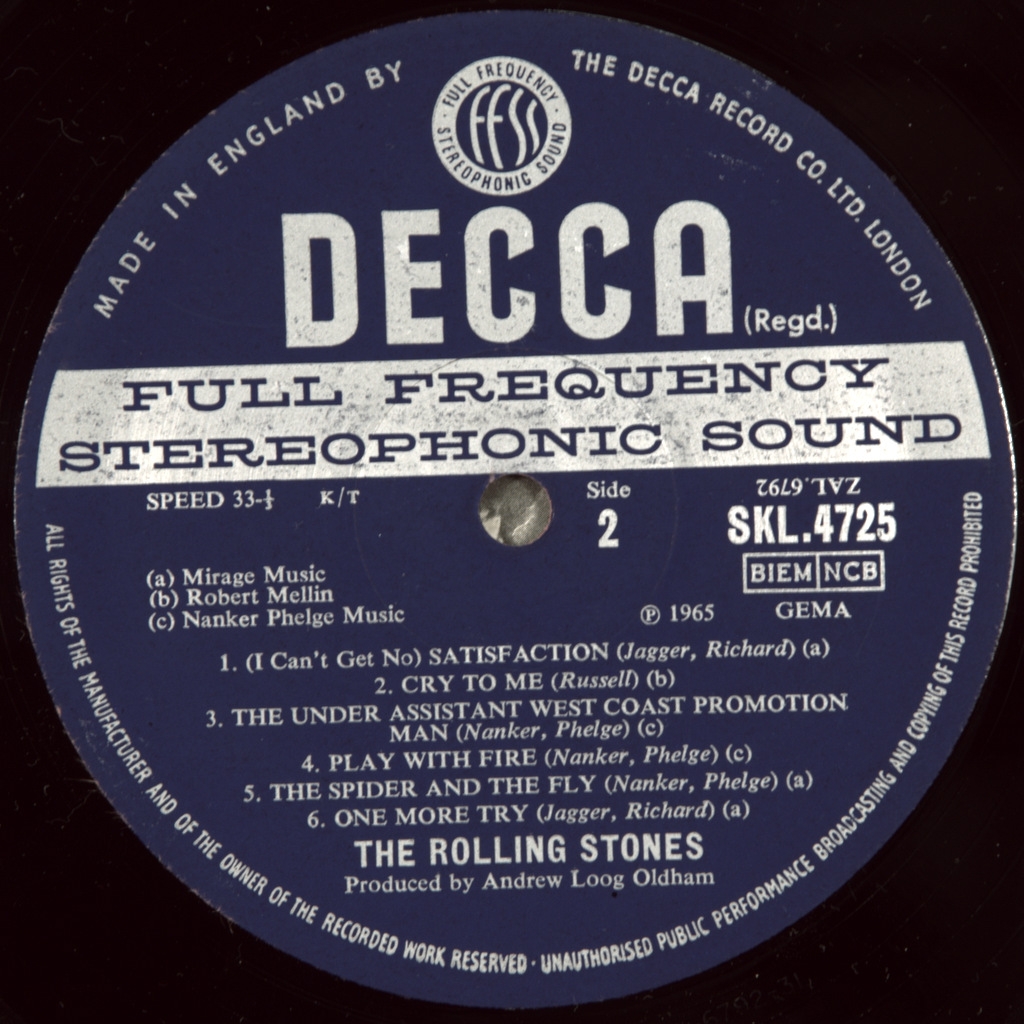 ROLLING STONES-OUT OF OUR HEADS-1965-ЭКСПОРТНЫЙ СТЕРЕО ОРИГИНАЛ 1968 UK-DECCA- номер SKL4725 матрицы ZAL6791-2L/ZAL6792-3L стампера 1UH/1G