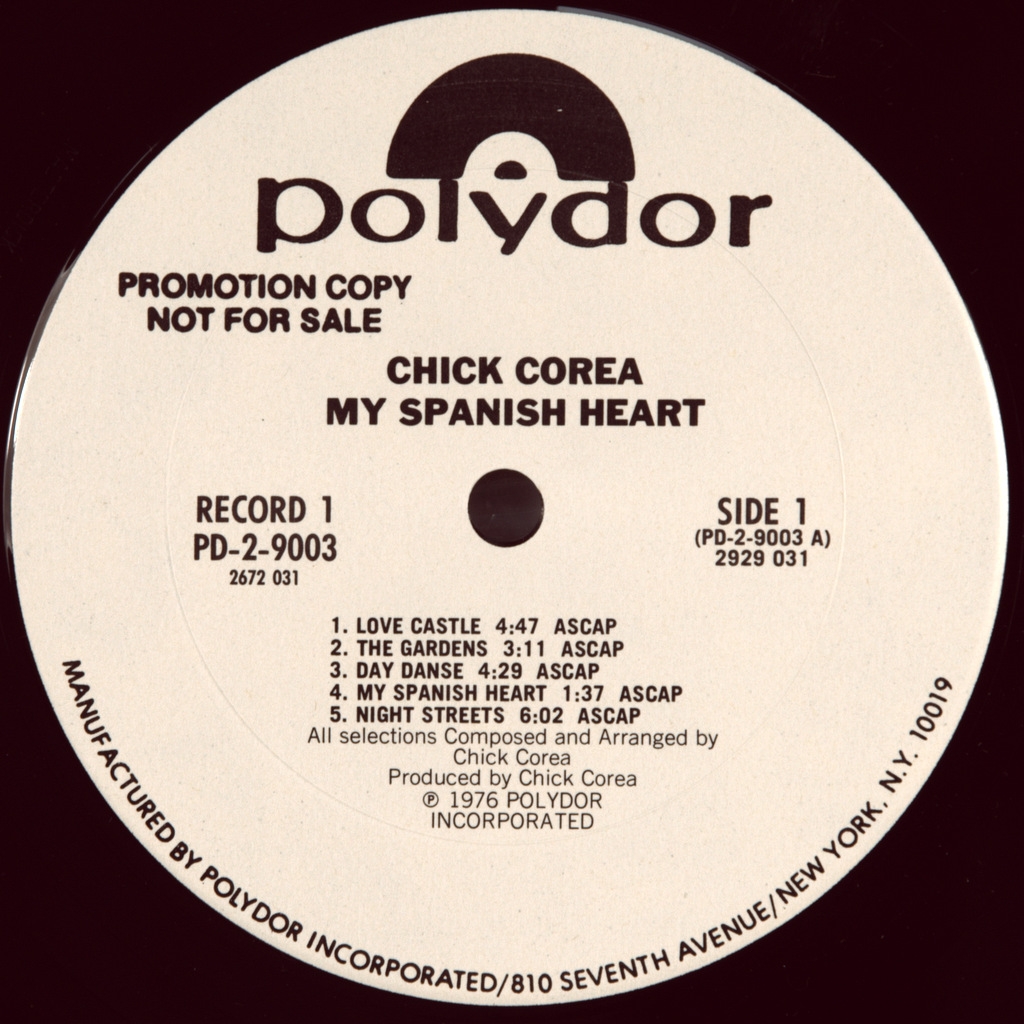 CHICK COREA-MY SPANISH HEART (2 LP)-1976-ПЕРВЫЙ ПРЕСС (PROMO)USA-POLYDOR номер PD-2-9003.Очень редкий промо альбом в фантастическом состоянии.