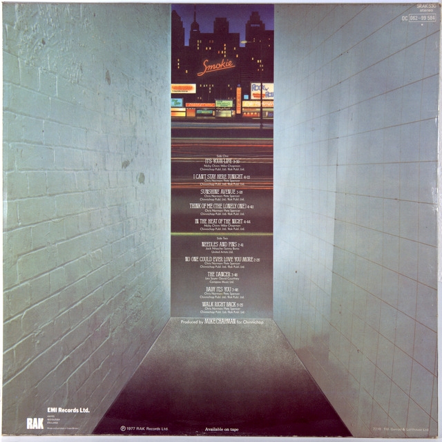 SMOKIE-BRIGHT LIGHTS & BACK ALLEYS-1977-ПЕРВЫЙ ПРЕСС UK-RAK номер SRAK530. Редкий британский оригинал.