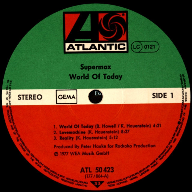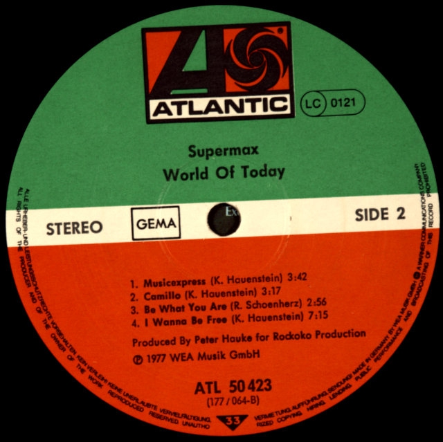 Альбом легендарной диско-фанковой группы SUPERMAX-WORLD OF TODAY-1977-Первый пресс GERMANY-ATLANTIC- номер ATL 50423 матрицы A3/B3