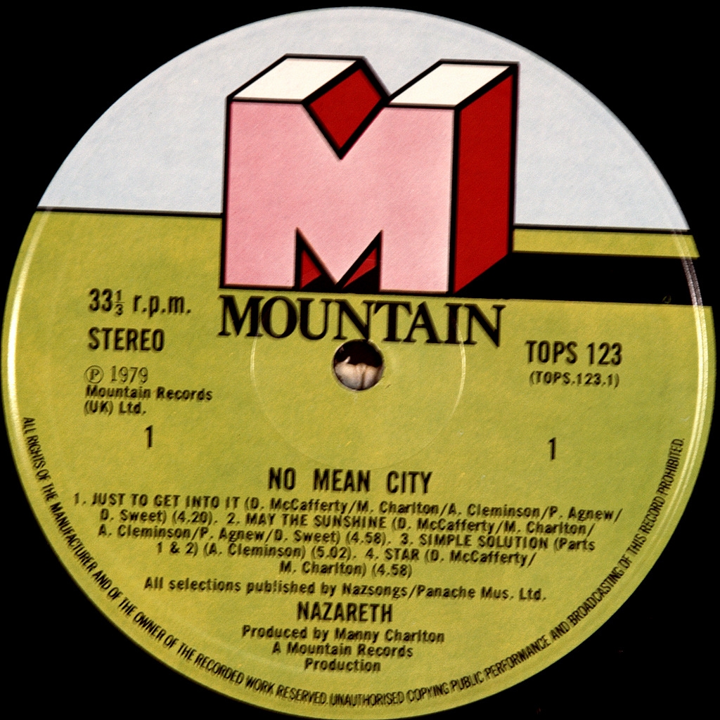 NAZARETH-NO MEAN CITY-1979-ПЕРВЫЙ ПРЕСС UK-MOUNTAIN номер TOPS123. Мега редкий британский оригинал в топ состоянии.
