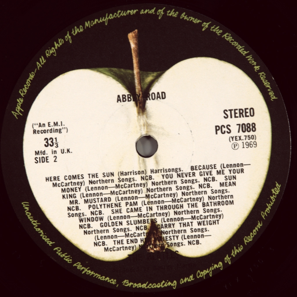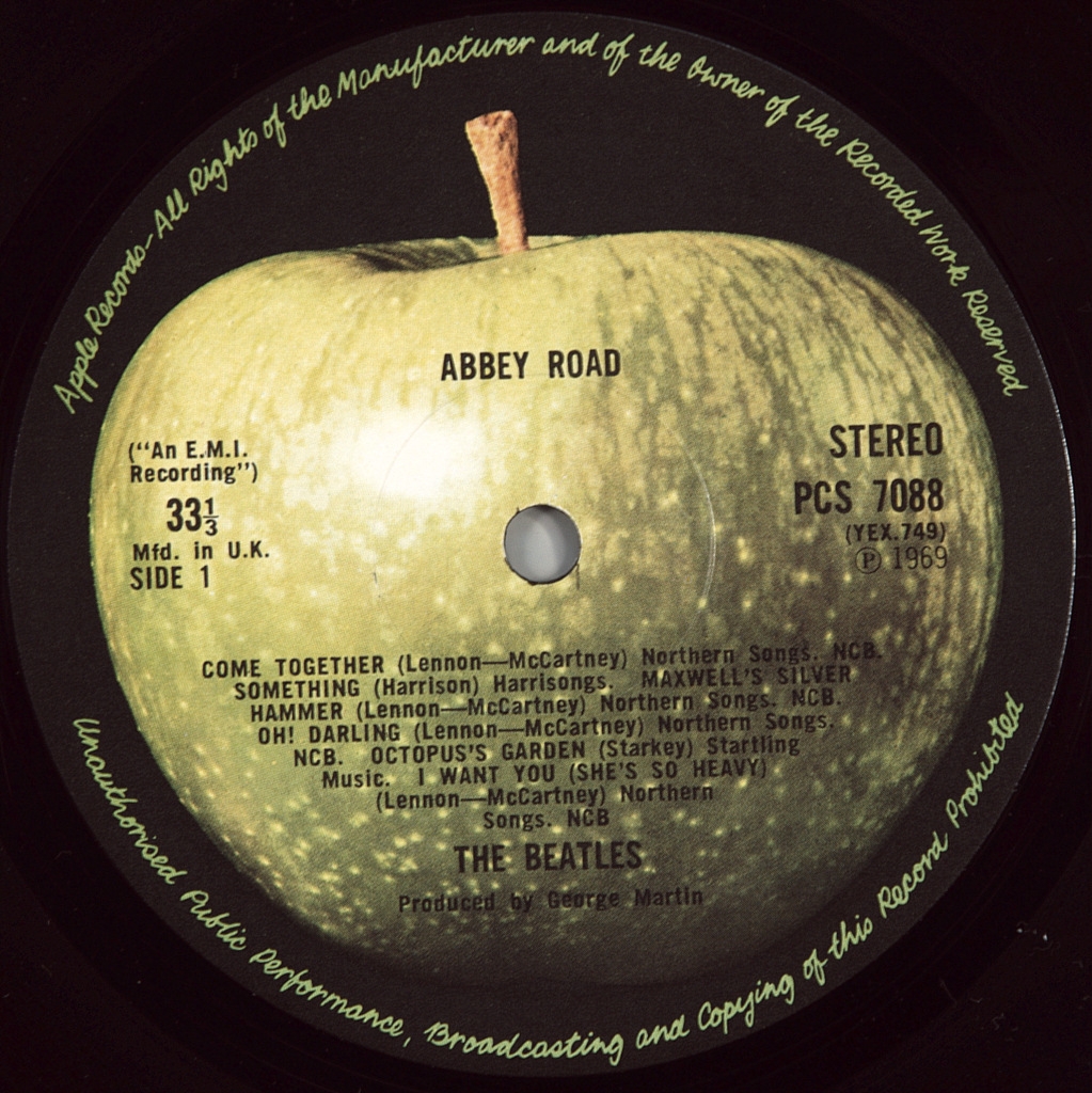 BEATLES-ABBEY ROAD-1969-ПЯТЫЙ ПРЕСС 1976 UK-APPLE номер PCS7088 Матричные номера: Сторона 1: YEX 749-4; Сторона 2: YEX 750-3 . Пятый пресс, лето 1976-1980. Светло-зеленый лейбл яблоко.