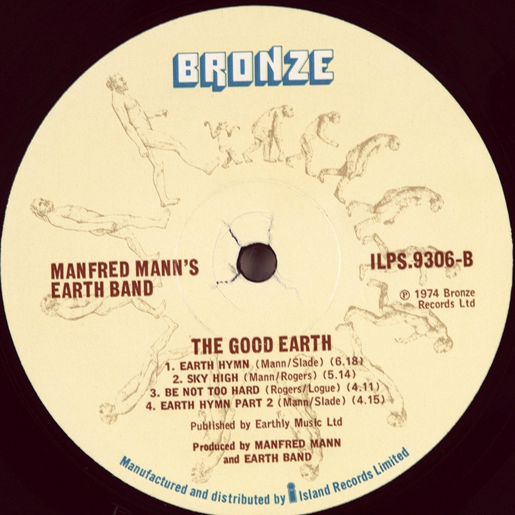 MANFRED MANN'S EARTH BAND-THE GOOD EARTH-1974-ПЕРВЫЙ ПРЕСС UK-BRONZE -ILPS9306. матрицы A-2U/B-2U, стампера 1GO/2GM.(Очень рано!!!!) The Good Earth — пятый студийный альбом британской рок-группы Manfred Mann’s Earth Band, выпущенный 11 октября 1974 года лейблом «Bronze Records» в Великобритании и лейблом «Warner Bros. Records» в США. Диск поднялся до #157 в Billboard 200 всех альбомов рок иерархии.
