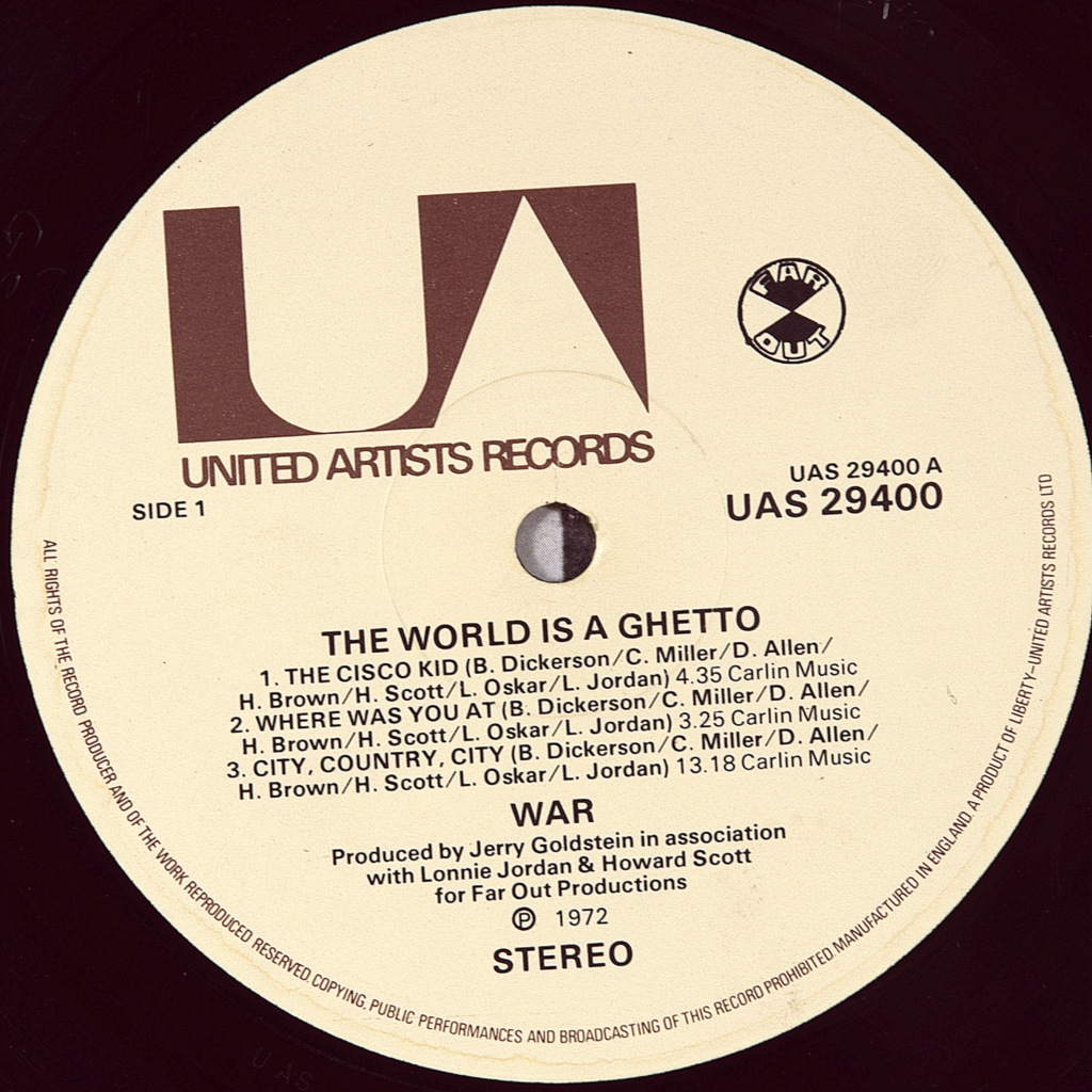 WAR -WORLD IS A GHETTO-1972-ПЕРВЫЙ ПРЕСС UK-UNITED ARTIST номер UAS29400. Очень редкий британский оригинал культовой фанк-рок группы.The World Is a Ghetto-пятый альбом группы War. Альбом занял первое место на Billboard, и 444 место в журнале Rolling Stone вошел в список 500 величайших альбомов всех времен. Заглавная песня стала золотой записью.