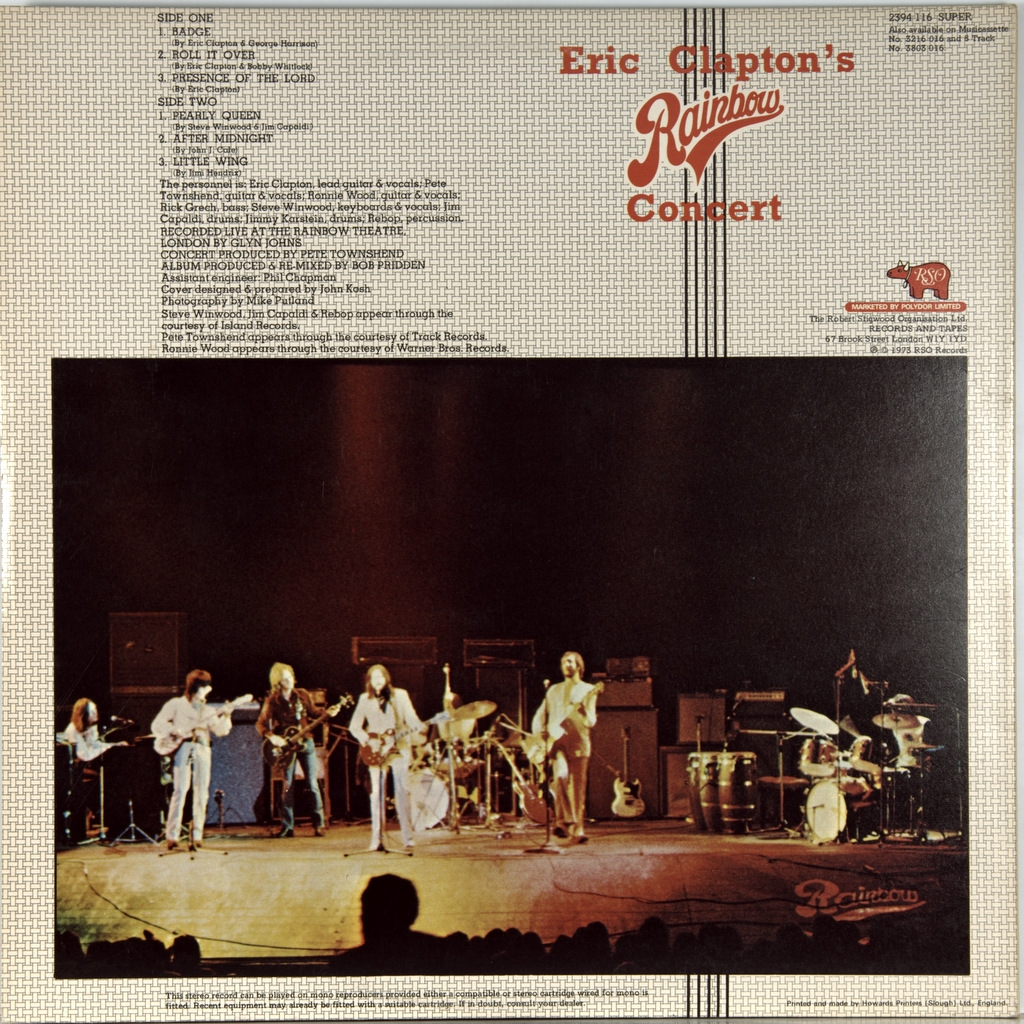 CLAPTON, ERIC -ERIC CLAPTON'S RAINBOW CONCERT-1973-ПЕРВЫЙ ПРЕСС UK-RSO номер 2394-116. Редкий британский оригинал. Этот альбом был записан в театре Rainbow в Лондоне 13 января 1973 года. Концерты были организованы Pete Townshend из The Who и ознаменовал возвращение на Clapton после двух лет бездействия.