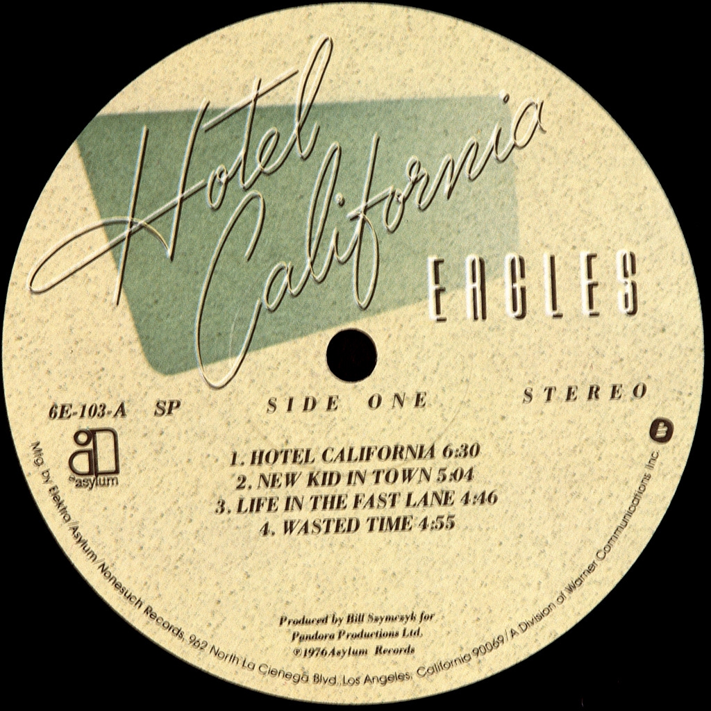 EAGLES-HOTEL CALIFORNIA-1976-ПЕРВЫЙ ПРЕСС (КЛУБНЫЙ)USA-ASYLUM -6E-103. Редкий американский оригинал. В 2001 году альбом Hotel California стал 15-м в списке величайших альбомов всех времён, версия VH1. В 2002 году альбом занял 11 строку «100 лучших рок-альбомов всех времён» по версии журнала Classic Rock. Композиции с альбома- «New Kid in Town» и «Hotel California» -возглавили американский чарт продаж (Billboard Hot 100), причём последняя была также удостоена «Грэмми».