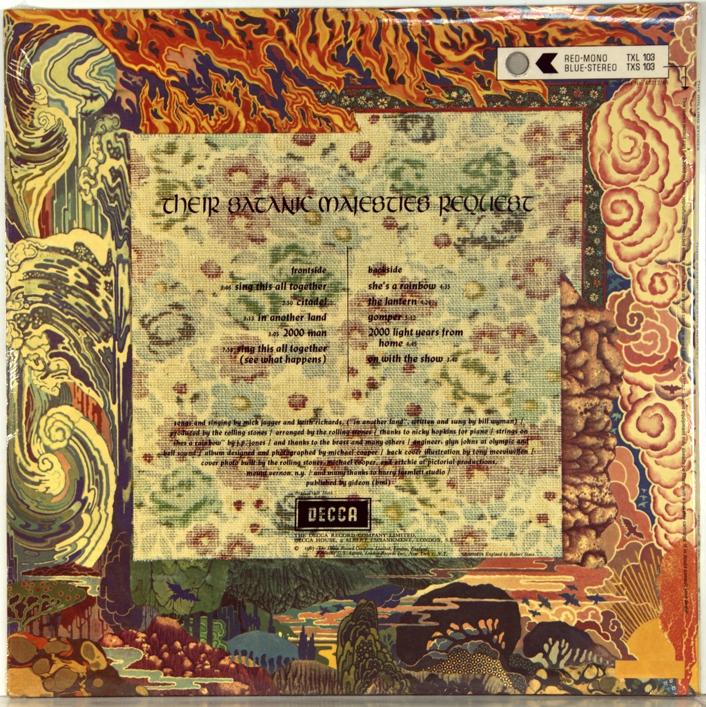 ROLLING STONES-THEIR SATANIC MAJESTIES REQUEST (STEREO) 1967-ОРИГИНАЛЬНЫЙ ПРЕСС 1970 UK-DECCA номер TXS103. Редкое раннее британское издание культового альбома RS. Satanic Majesties Request - это шестой британский и восьмой американский студийный альбом Rolling Stones. На записи альбома группа широко экспериментировала с психоделическим звуком в студии, включая такие элементы, как нетрадиционные инструменты, звуковые эффекты , аранжировки струн и африканские ритмы.