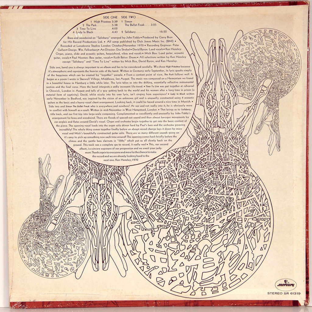 URIAH HEEP-SALISBURY-1971-ПЕРВЫЙ ПРЕСС USA-MERCURY номер SR-61319. Редкий оригинал в альтернативной обложке. Salisbury - второй студийный альбом британской рок-группы Uriah Heep, вышедший в 1971 году, записанный продюсером Gerry Bron. Альбом поднялся до #103 в списках Billboard 200. Центральной вещью пластинки стала занявшая всю её вторую сторону одноимённая арт-роковая сюита, записанная с симфоническим оркестром из 24 участников. Была отмечена критиками также «Lady in Black», одна из популярнейших песен всего концертного репертуара группы, партию вокала в которой исполнил её автор Ken Hensley.