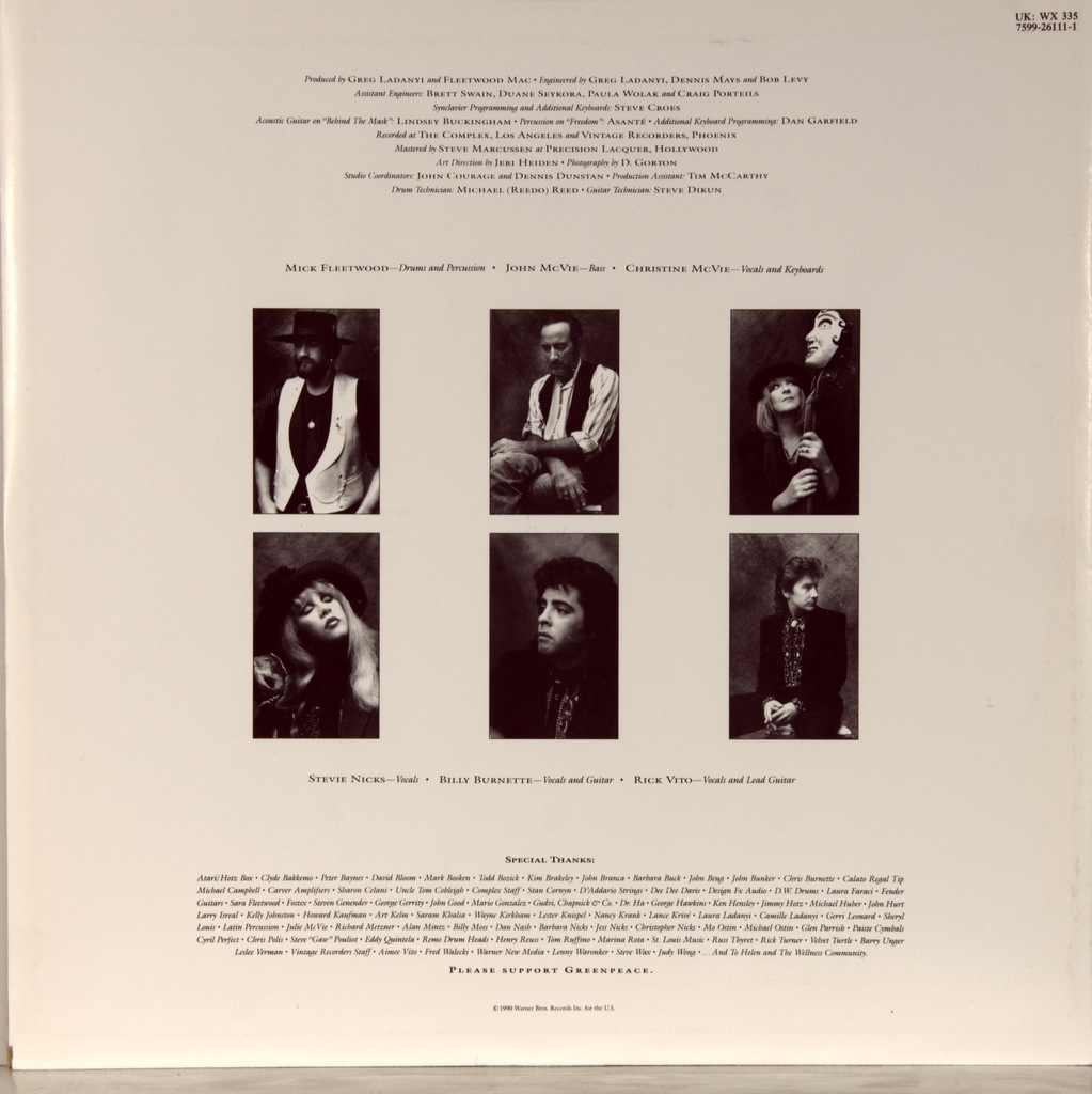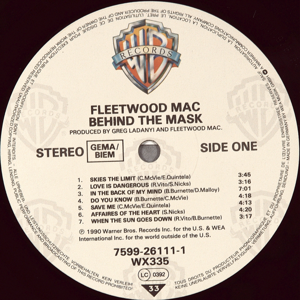 FLEETWOOD MAC-BEHIND THE MASK-1990-ПЕРВЫЙ ПРЕСС UK/EU-GERMANY-WARNER BROS 7599-26111-1. Это был первый альбом, выпущенный группой после ухода гитариста Lindsey Buckingham. Его заменили Billy Burnette и Rick Vito, оба гитаристы, певцы и авторы песен. Как отметили критики , альбом получился великолепным.