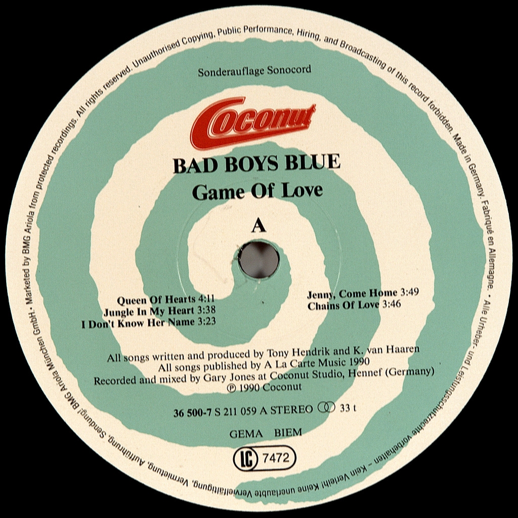 BAD BOYS BLUE-GAME OF LOVE-1990-ПЕРВЫЙ ПРЕСС GERMANY-COCONUT номер 36500-7. Редкий оригинал диско шедевра. Game of Love - шестой студийный альбом немецкой группы Bad Boys Blue . Он был выпущен 29 октября 1990 года Coconut Records. Альбом был сертифицирован золотом в Европе в 1991 году.