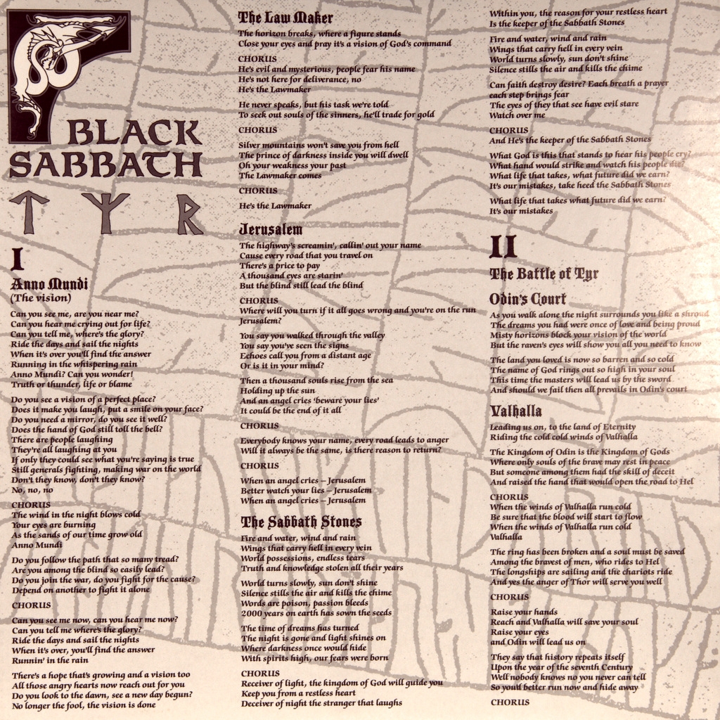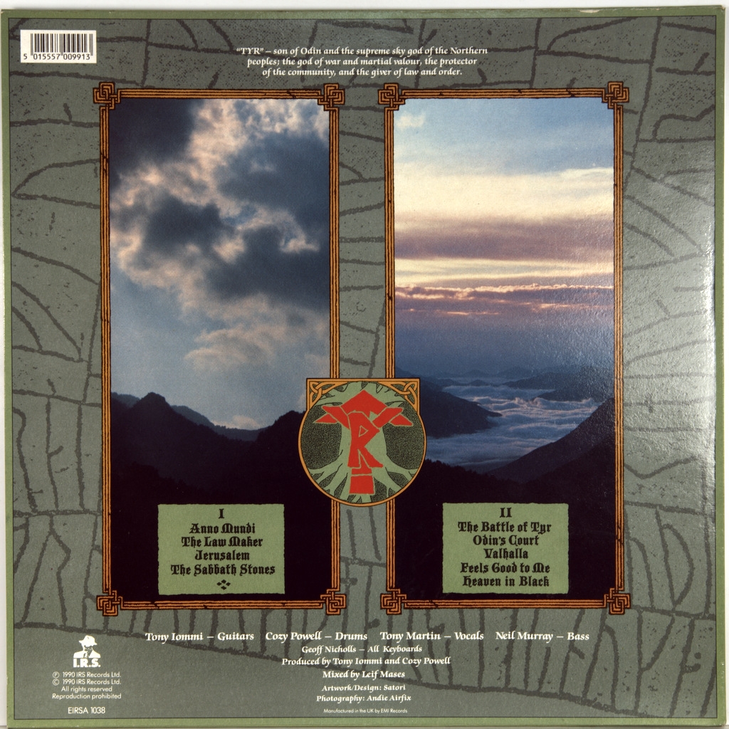 BLACK SABBATH-TYR-1990-ПЕРВЫЙ ПРЕСС UK-I.R.S номер EIRSA1038 Мега редкий британский оригинал. Альбом назван по имени бога воинской доблести Тюра из скандинавской мифологии. Композиция «The Battle of Tyr» и песни: «In Odin’s Court», «Valhalla» посвящены скандинавской мифологии и викингам. В поддержку альбома был выпущен сингл и видеоклип с балладой Feels Good to Me, а также проведено концертное турне.