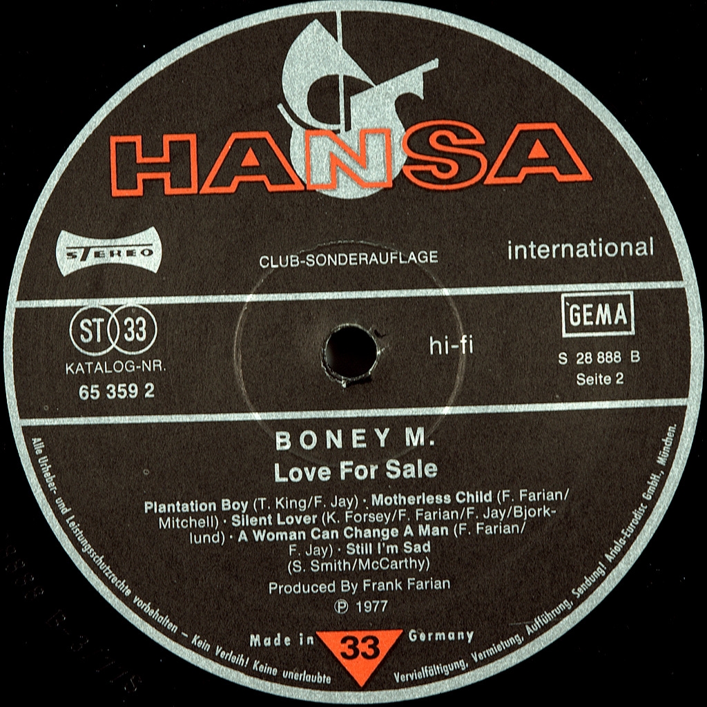 BONEY M-LOVE FOR SALE-1977-ПЕРВЫЙ ПРЕСС (КЛУБНЫЙ) GERMANY-HANSA номер 653592. Редкий второй альбом диско легенды в полном комплекте (большой плакат)